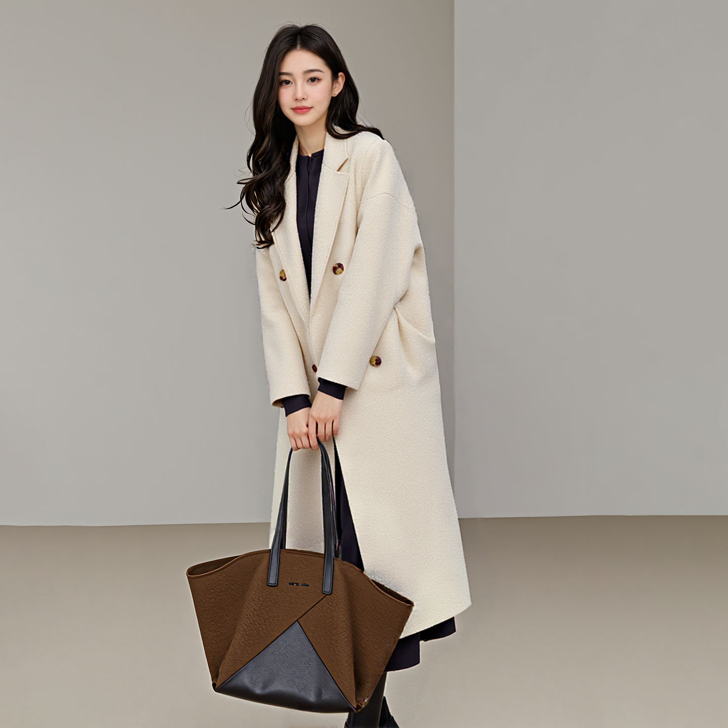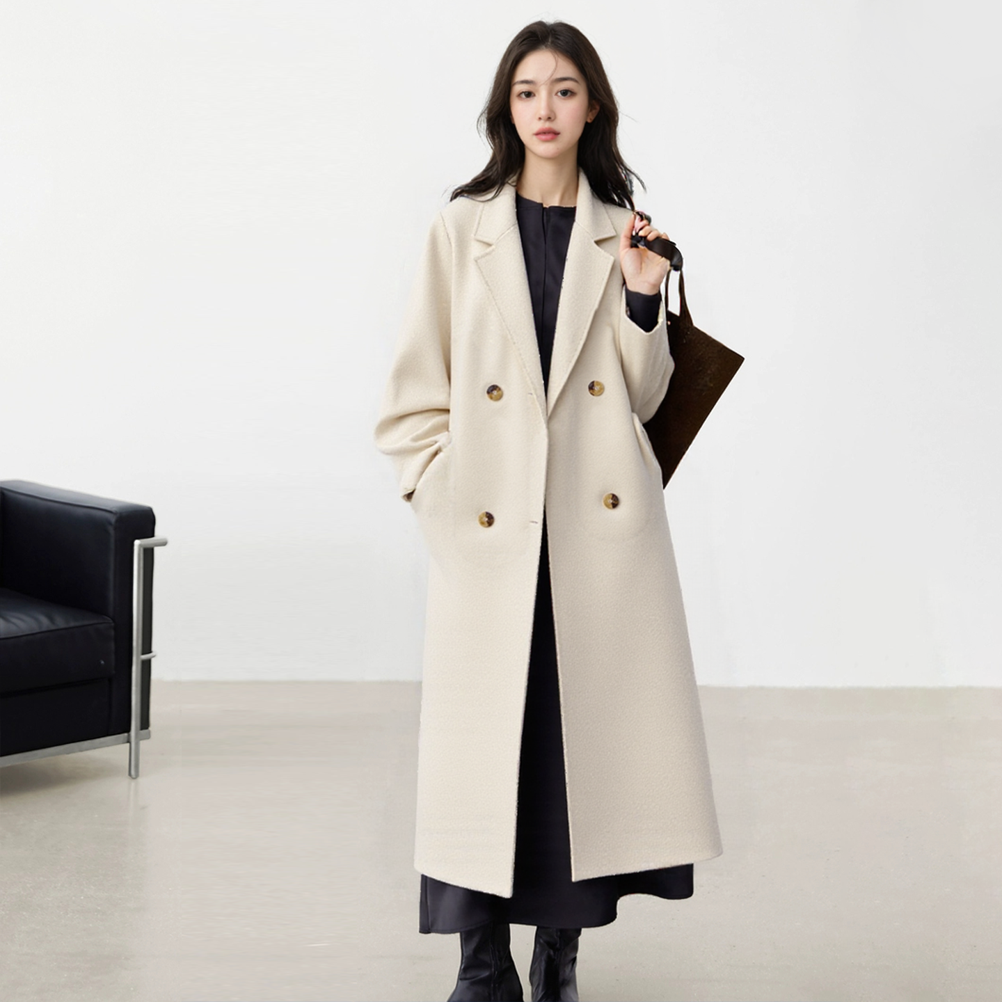 100%绵羊毛赫本风女长款毛呢大衣