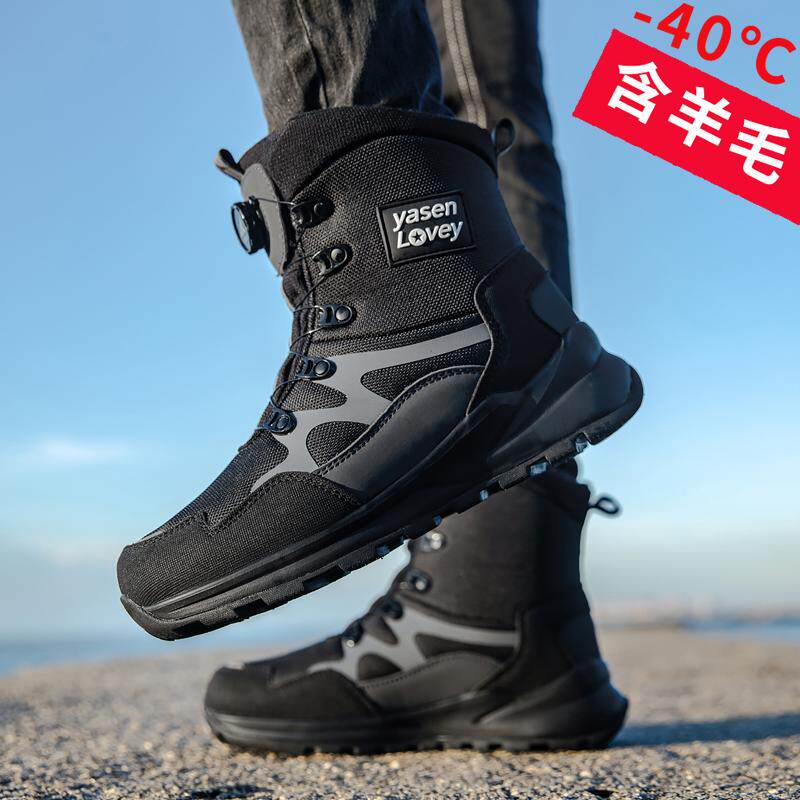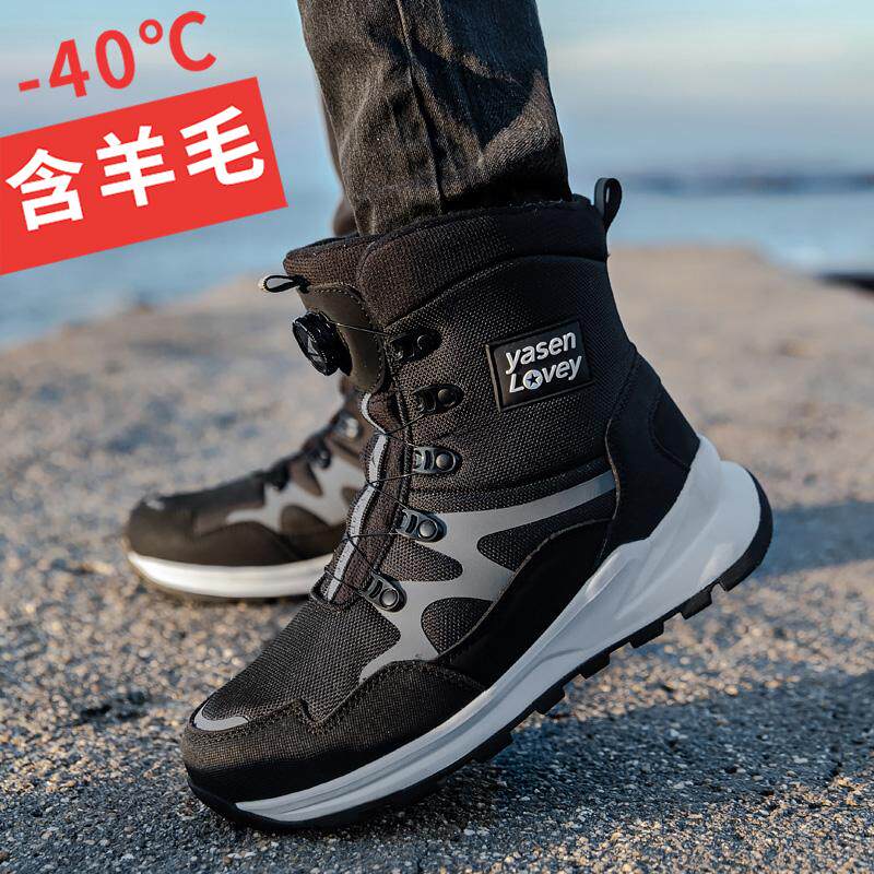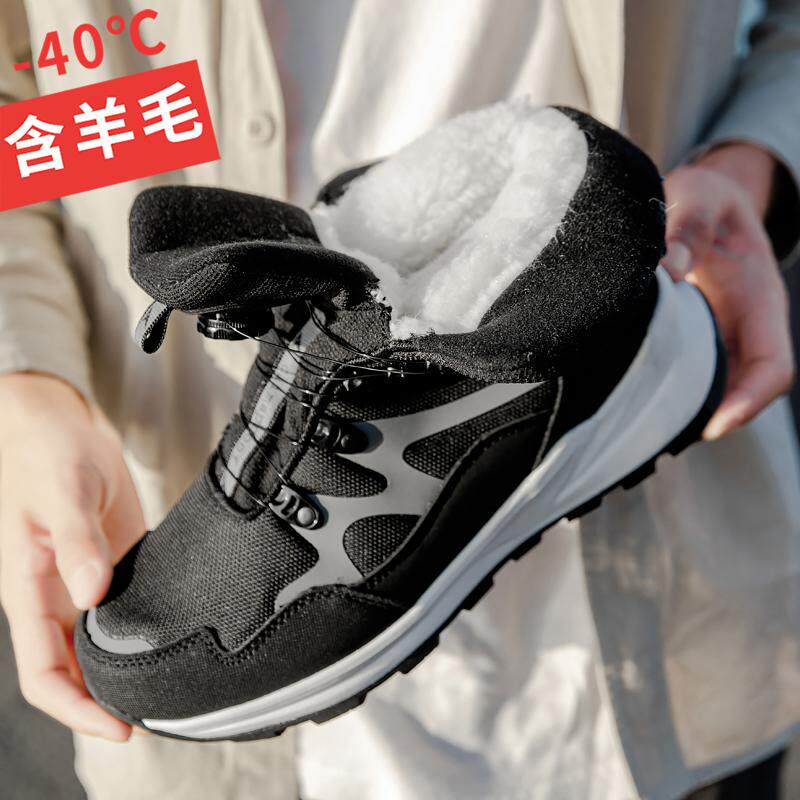 户外雪地靴男款东北加绒加厚免系带保暖棉鞋防水防滑抗寒靴子雪乡