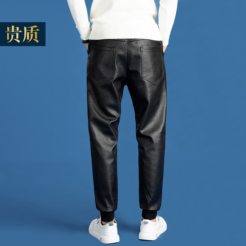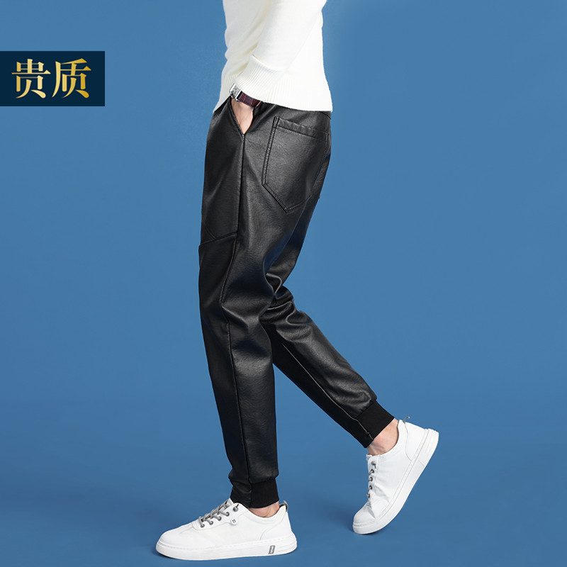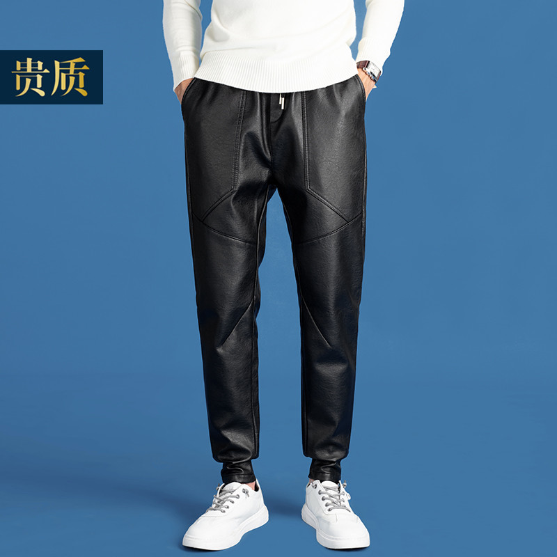 冬新款男休闲弹力机车皮裤时尚修身黑武士裤子网红精神小伙小脚裤