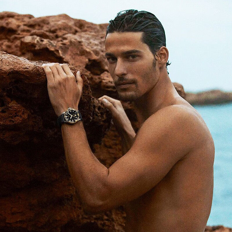 天梭海星潜水运动橡胶带石英男表