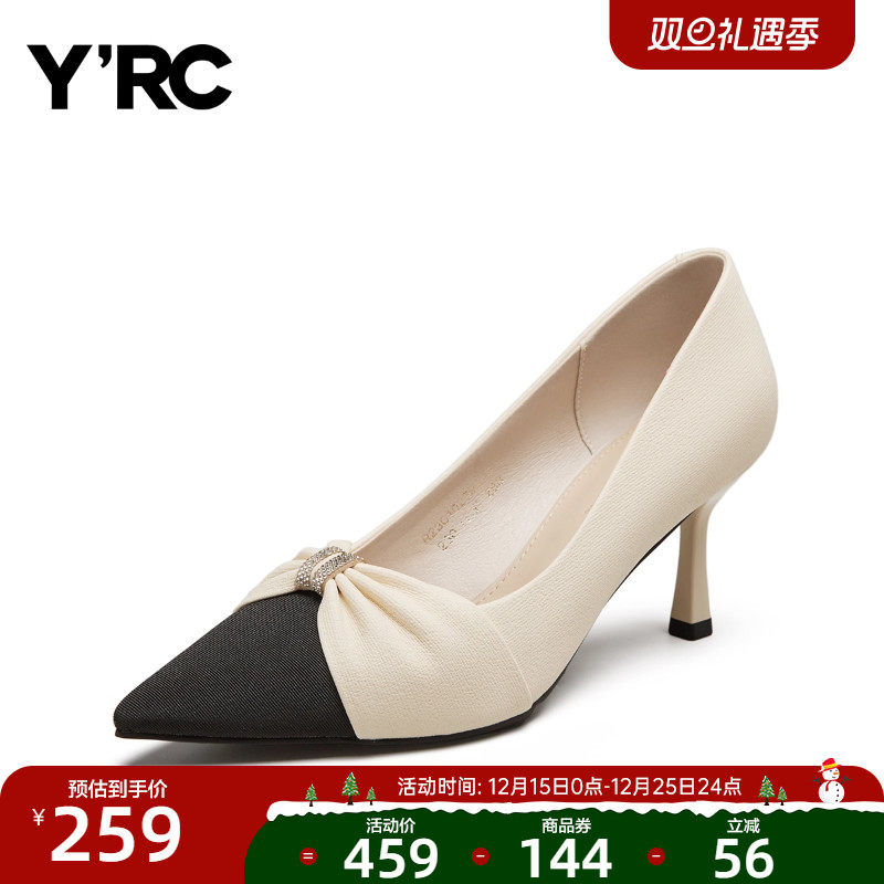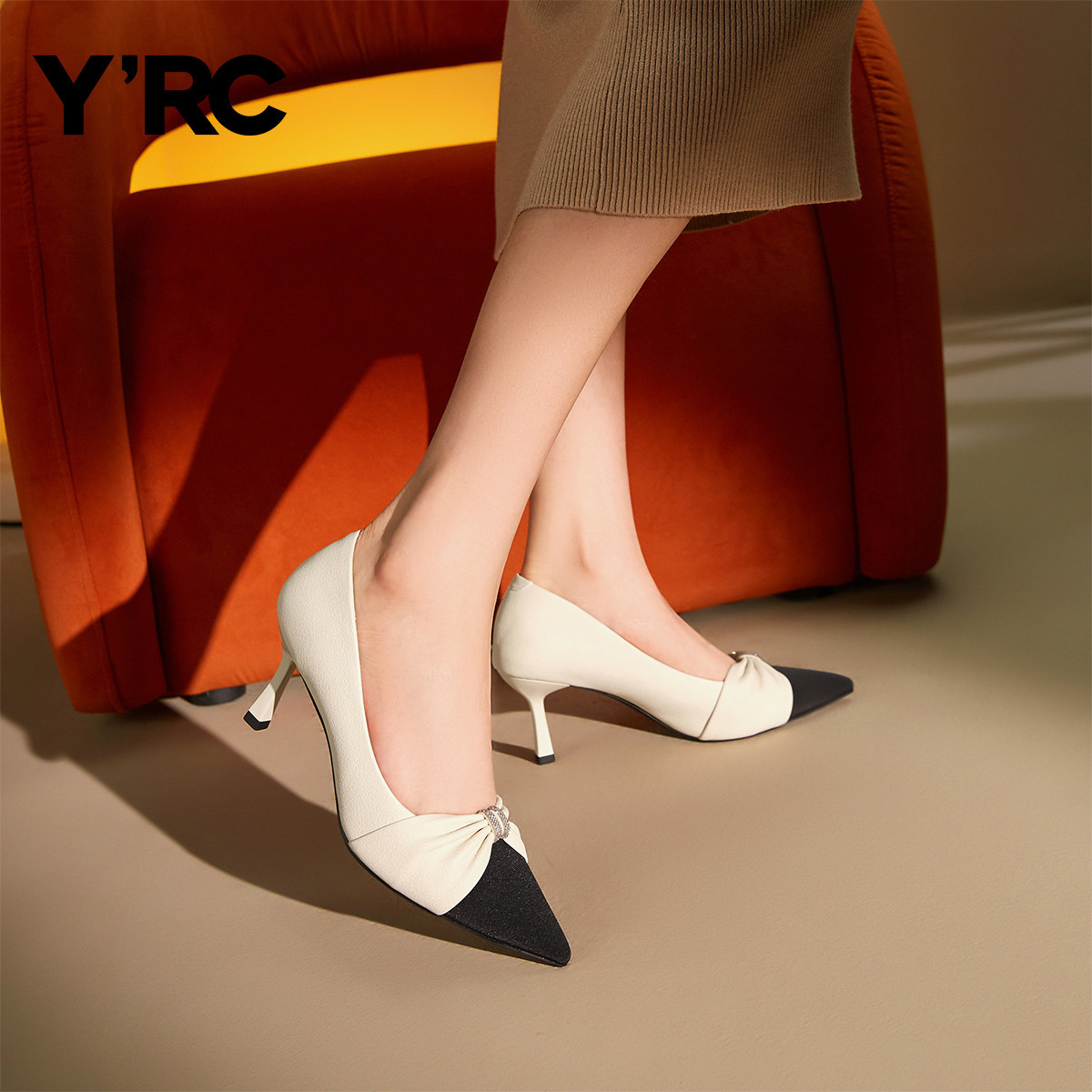 YRC尖头高跟鞋女蝴蝶结细跟单鞋