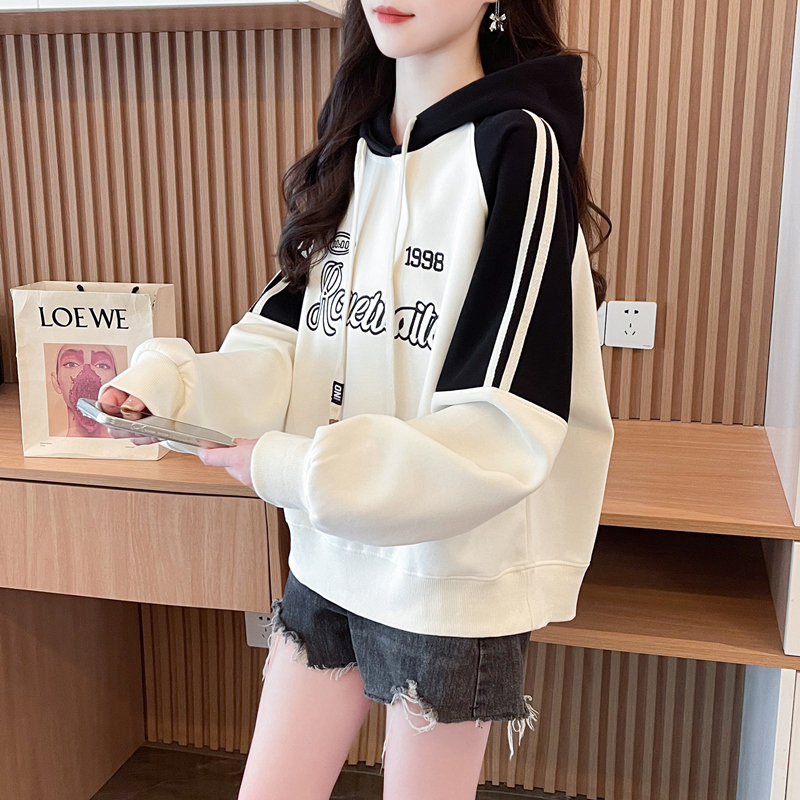 小个子卫衣春秋2025新款韩版宽松大码学生百搭撞色连帽上衣外套