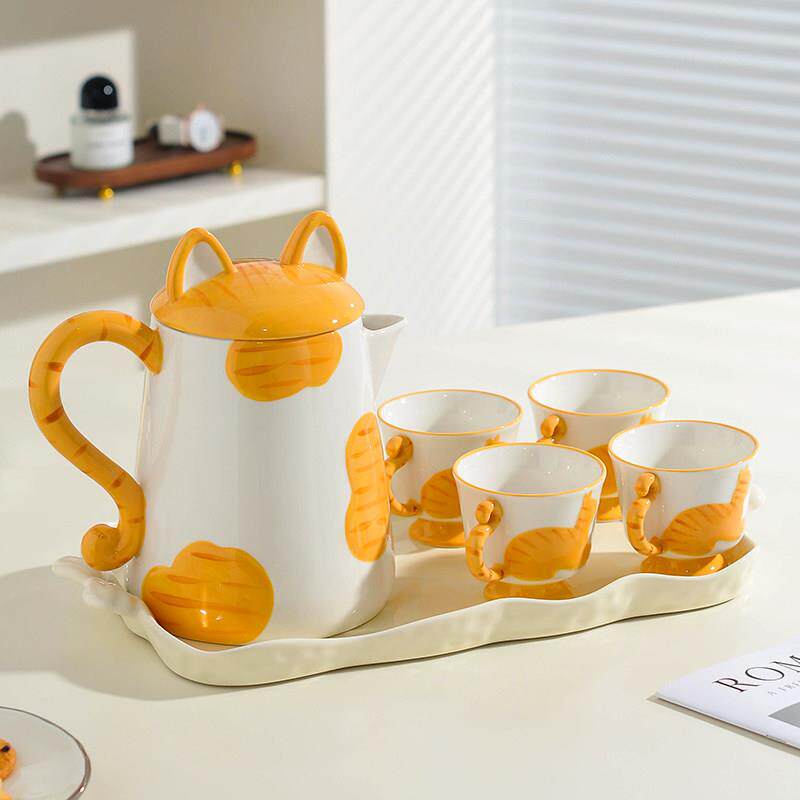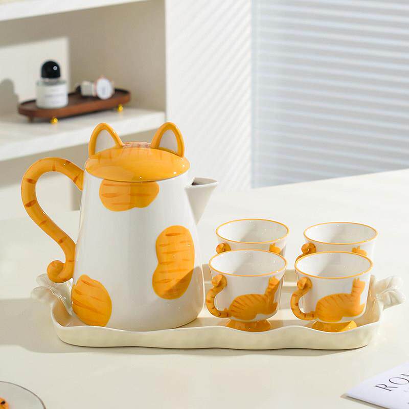 陶瓷水具套装萌趣猫猫水壶茶壶家用喝水杯子茶具杯具乔迁新居礼物