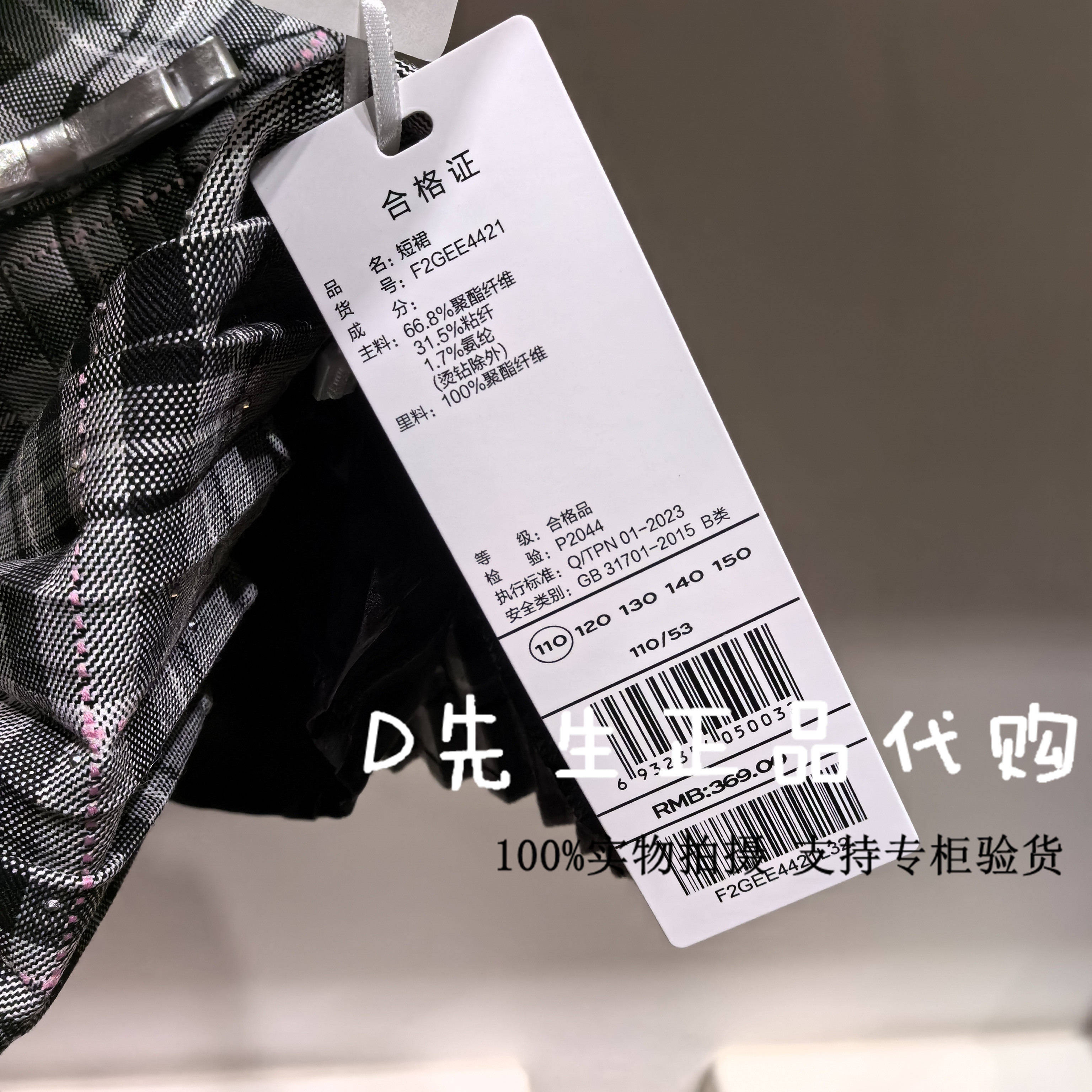 F2GEE4421 mini peace太平鸟童装2024冬装新款女童短裙 369