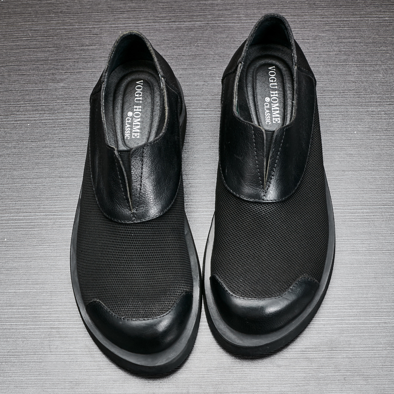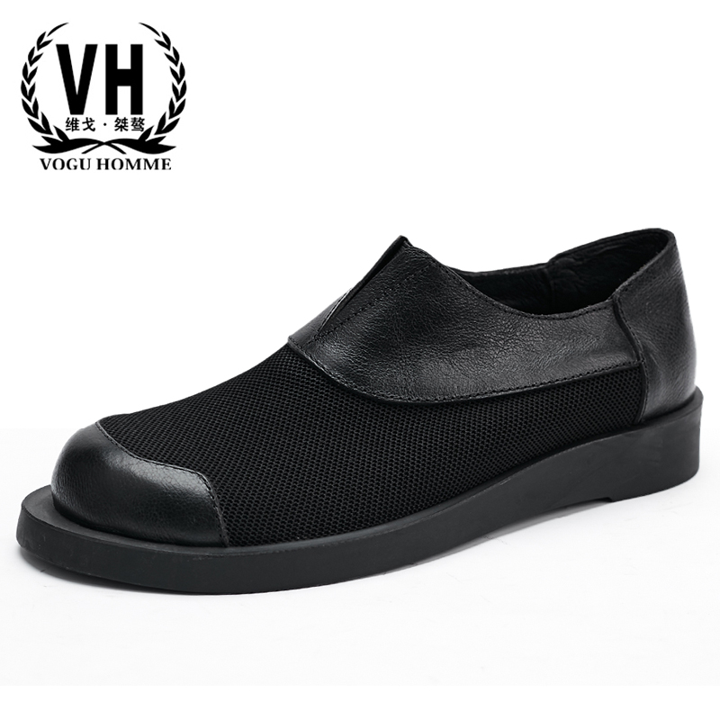 男鞋夏季素人真皮网布透气休闲鞋潮流大头鞋子商务休闲一脚蹬皮鞋