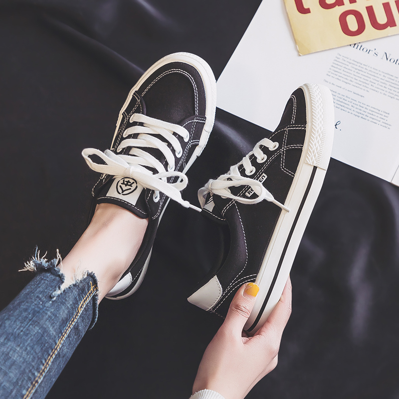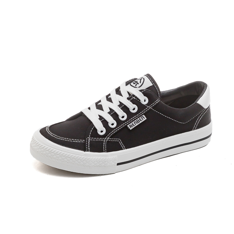 人本帆布鞋女春秋单鞋韩版学生低帮系带休闲鞋平底透气小白鞋女鞋