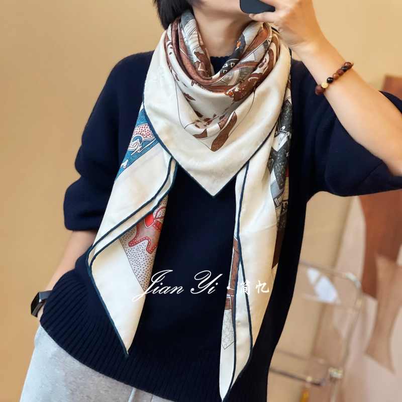【爱马之约】优雅气质真丝桑蚕丝羊毛提花130大方巾双面围巾披肩