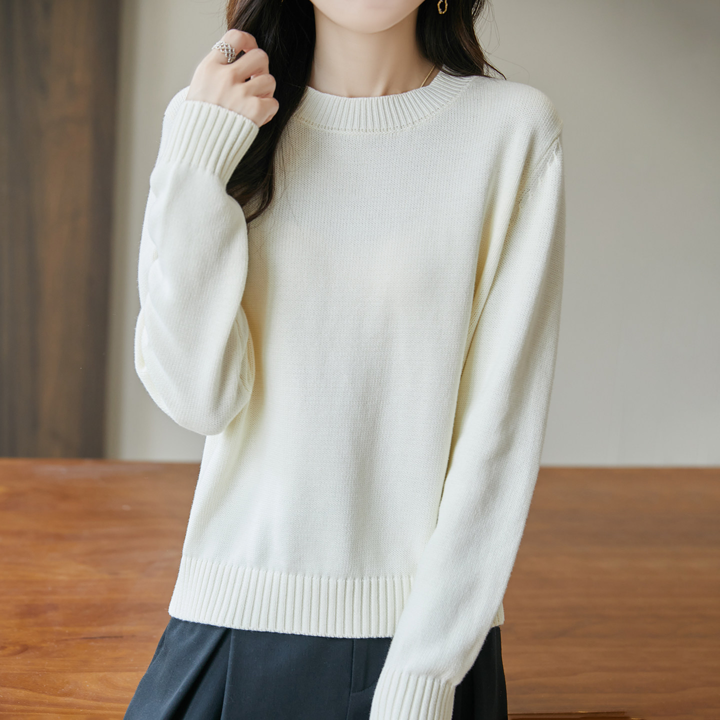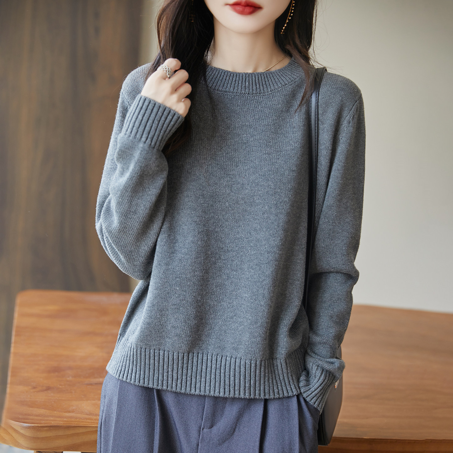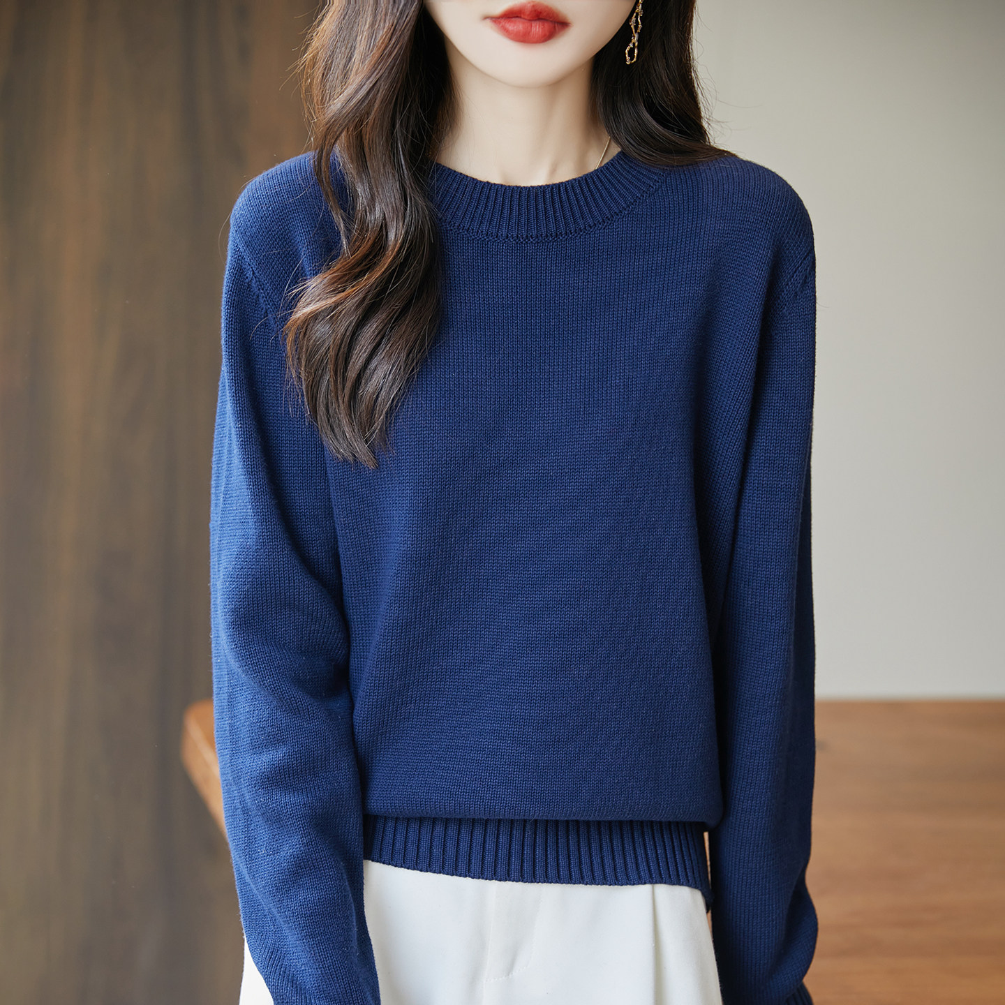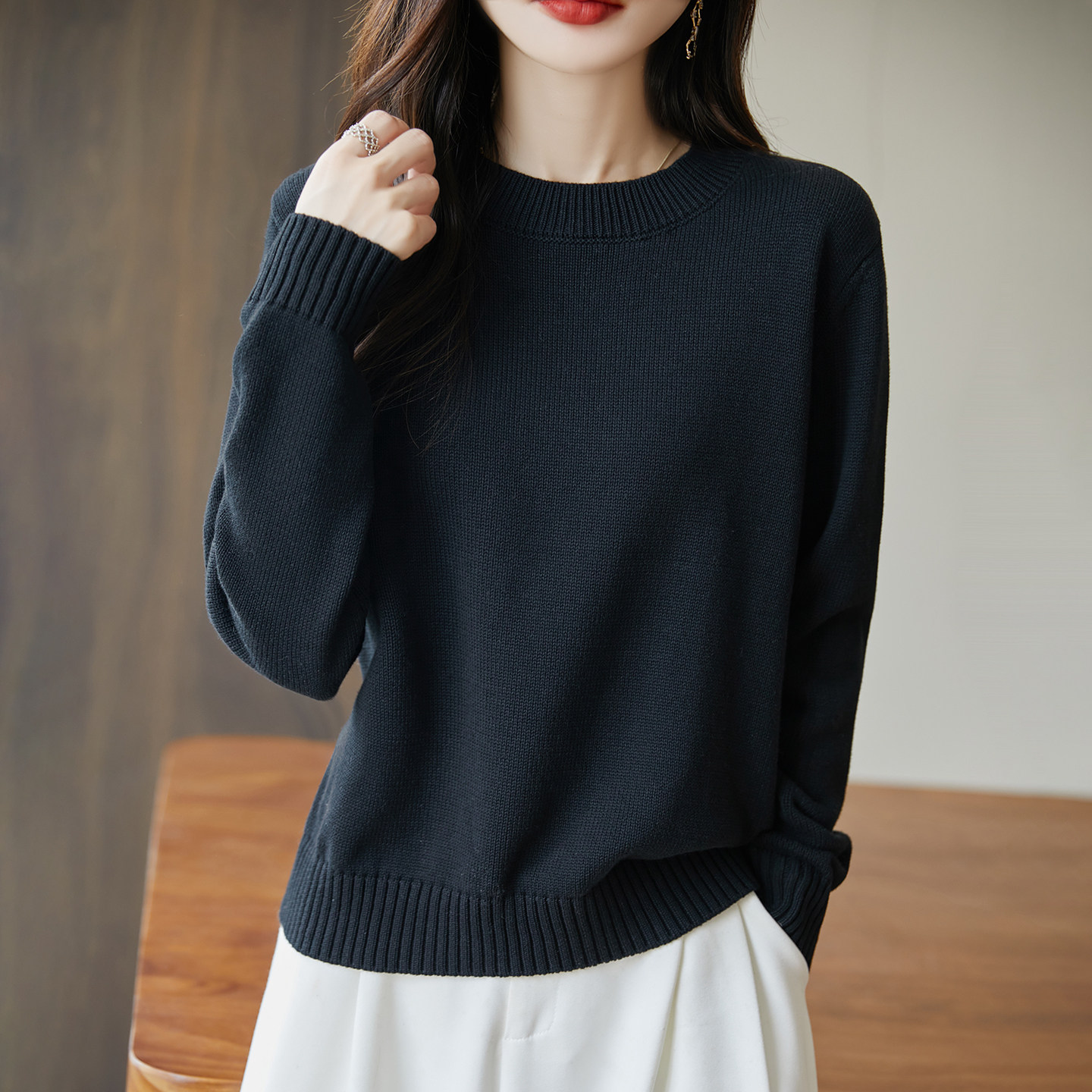 2025秋冬新款纯棉线圆领套头毛衣女宽松显瘦针织衫内搭打底衫上衣