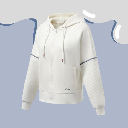 李宁正品秋季新款健身系列女子运动舒适开衫连帽卫衣外套AWDR942