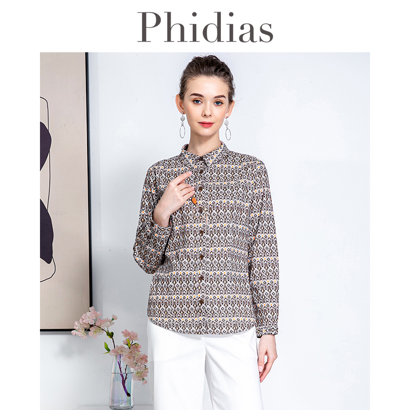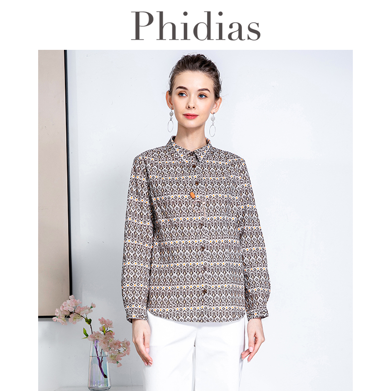 Phidias女士印花衬衫2024年春新款法式洋气减龄百搭长袖遮肚上衣