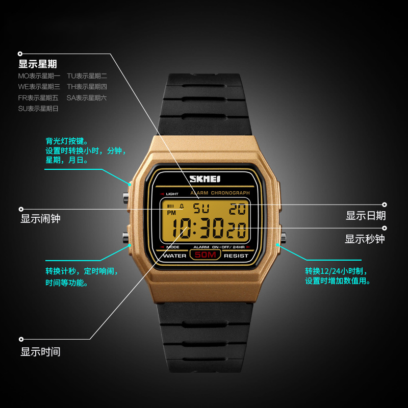 时刻美方形复古百搭多功能电子表