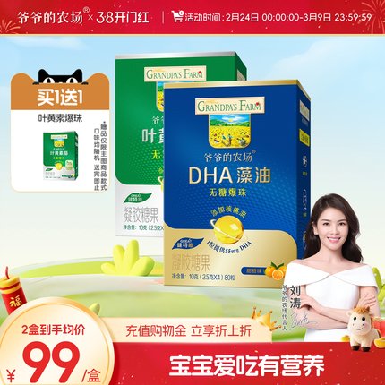 爷爷的农场DHA藻油小爆珠添加核桃油儿童送宝宝婴幼儿辅食谱80粒