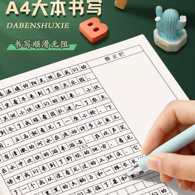 牛皮纸大号加厚作文本初中生a4练习簿小学生专用300格三四五三年六级方格16k语文作业本数学英语笔记本子批发