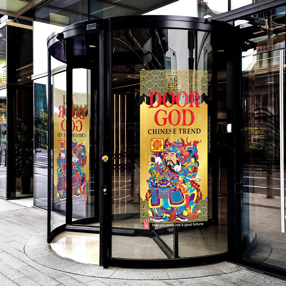 2025新年春节装饰品静电玻璃门贴纸创意门神金色店铺橱窗贴高级感