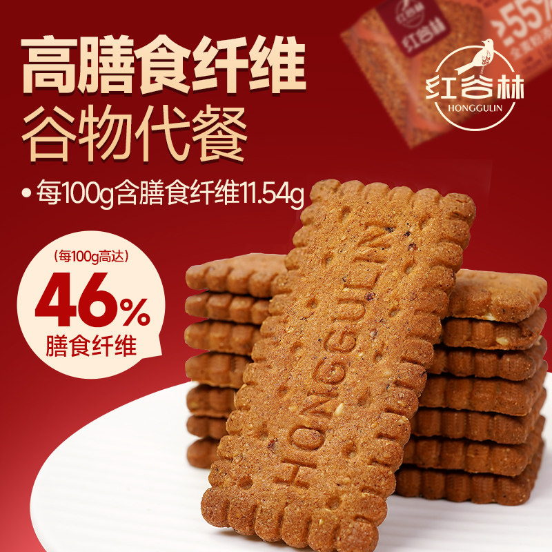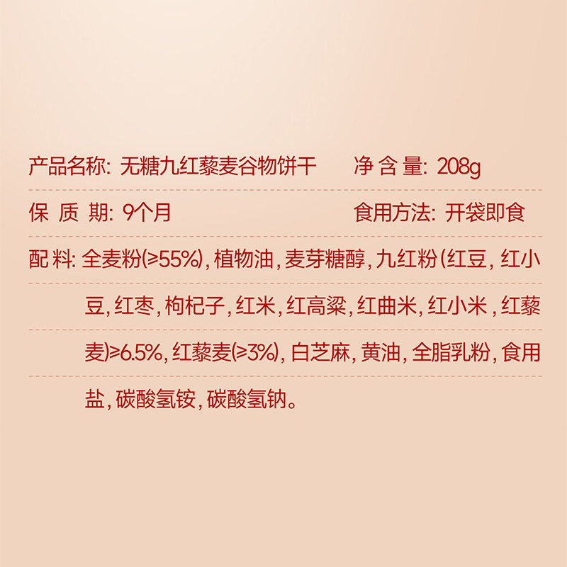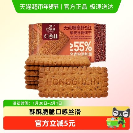 红谷林无糖高纤藜麦谷物9红饼干208g*1袋粗粮饱腹早餐代餐零食