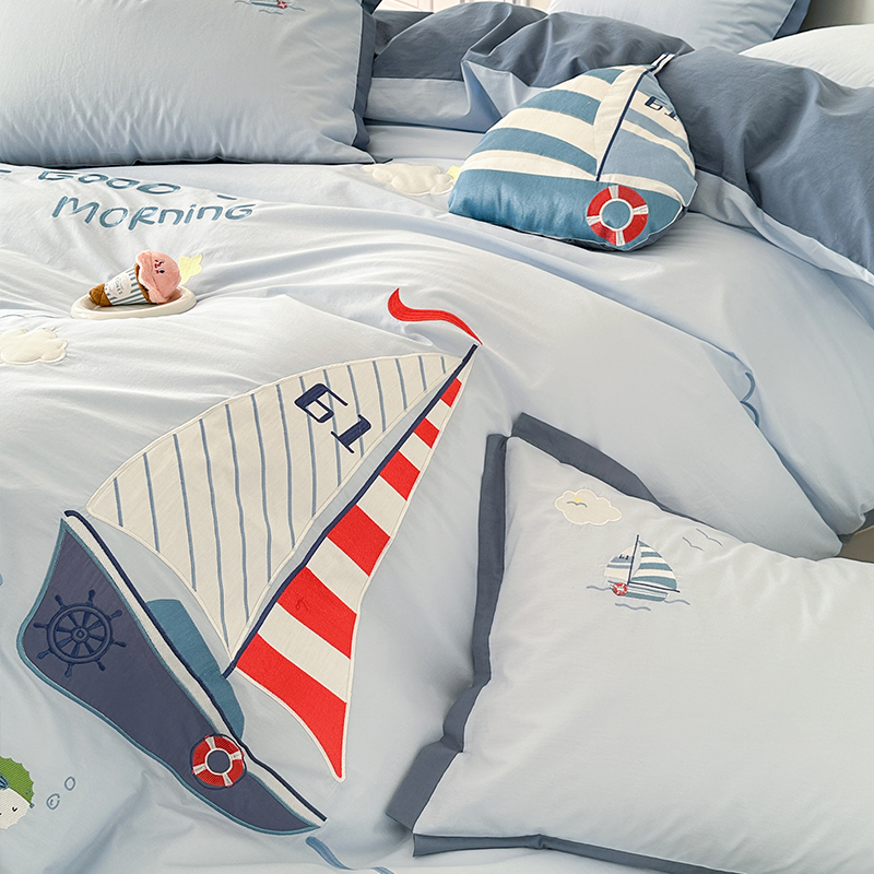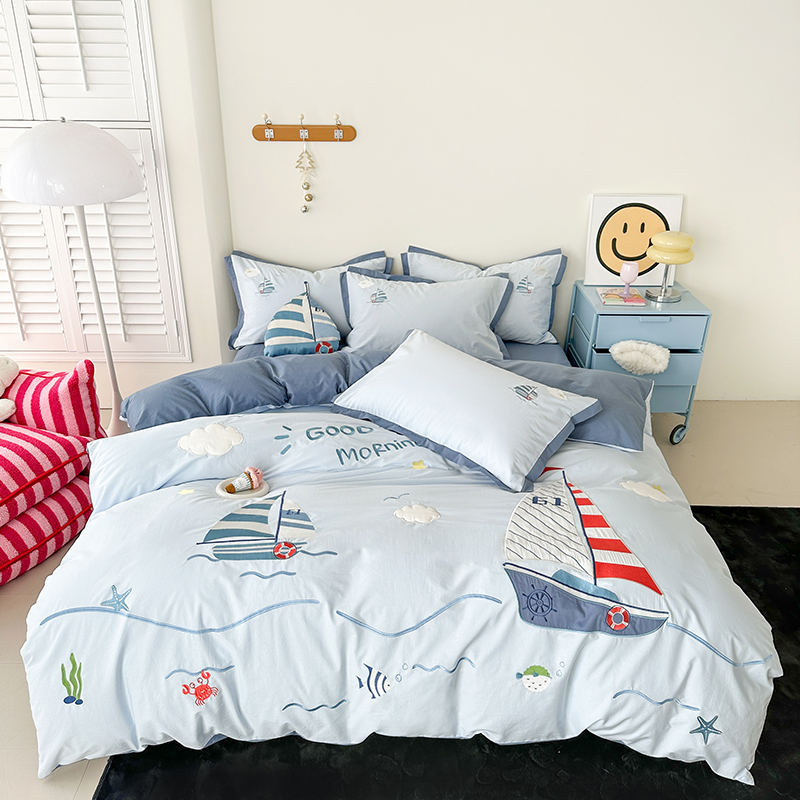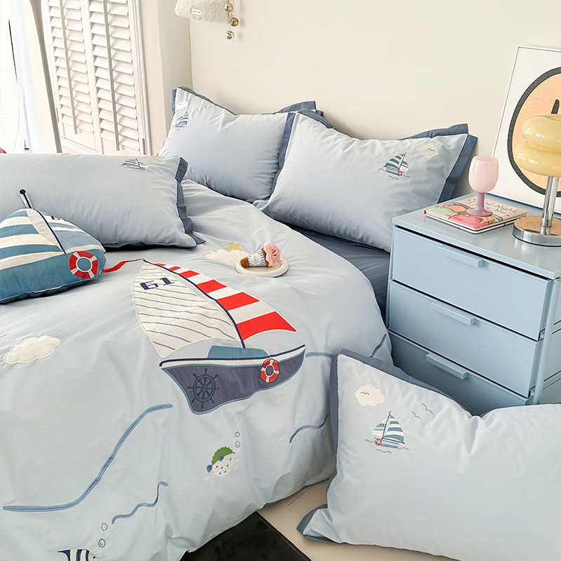 太空船蓝色卡通男孩床品四件套纯棉全棉儿童少年被套床单新款床品
