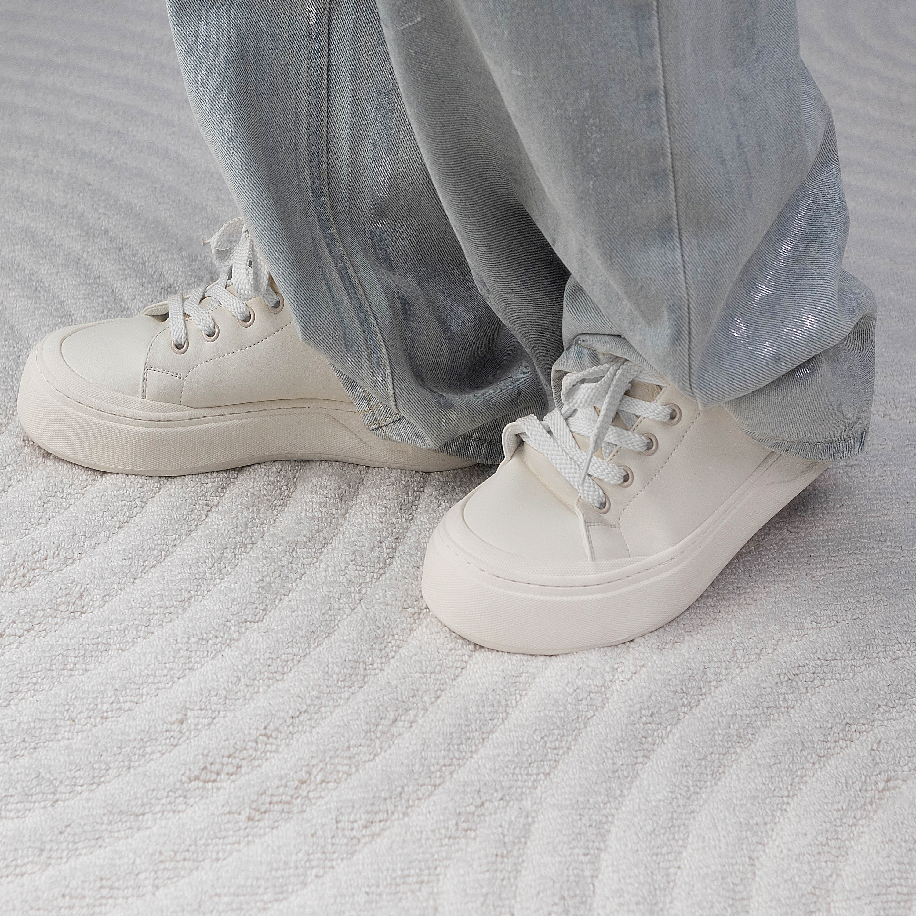 简约百搭纯色风厚底休闲小白鞋