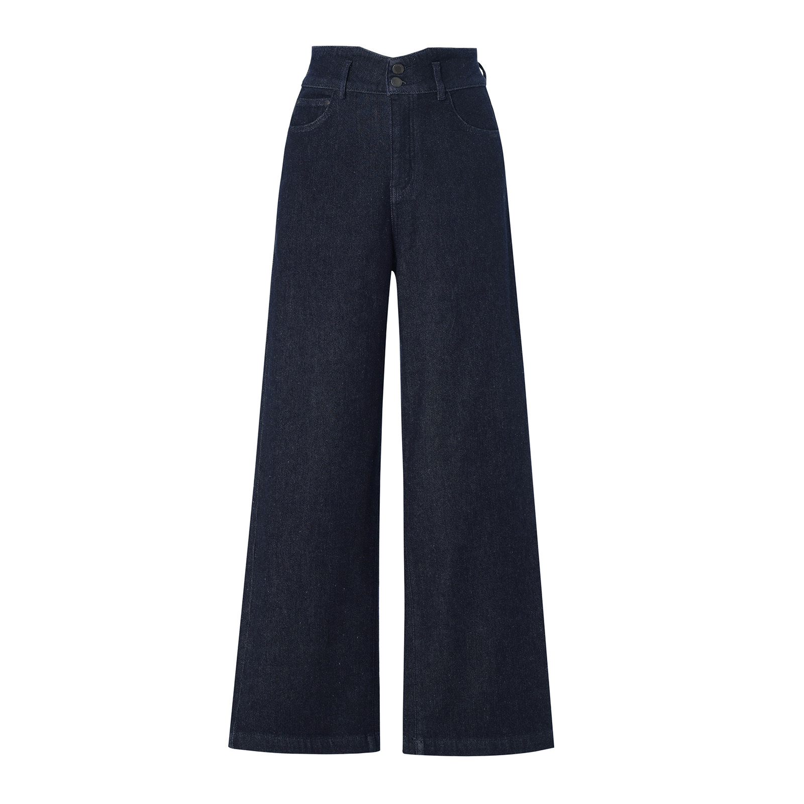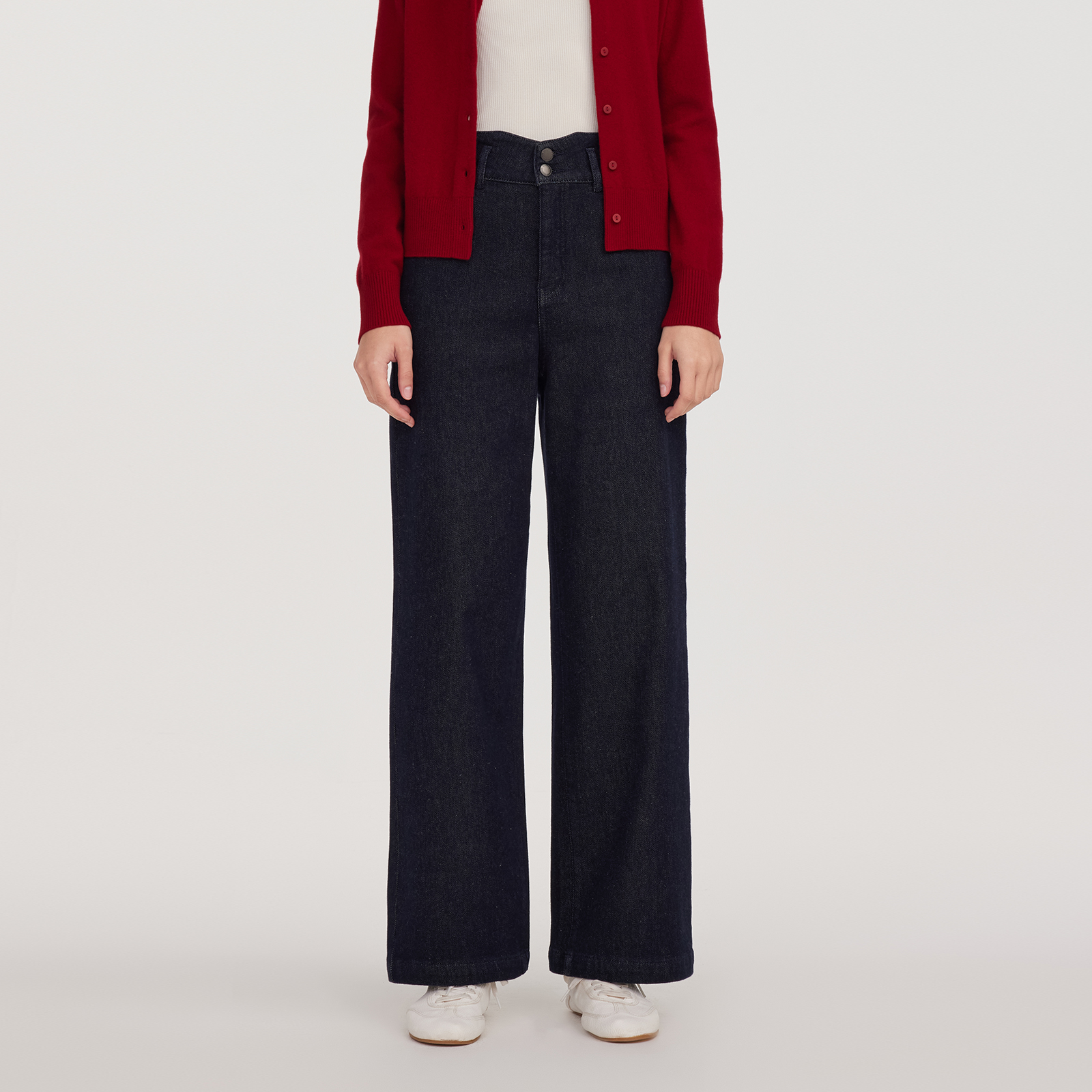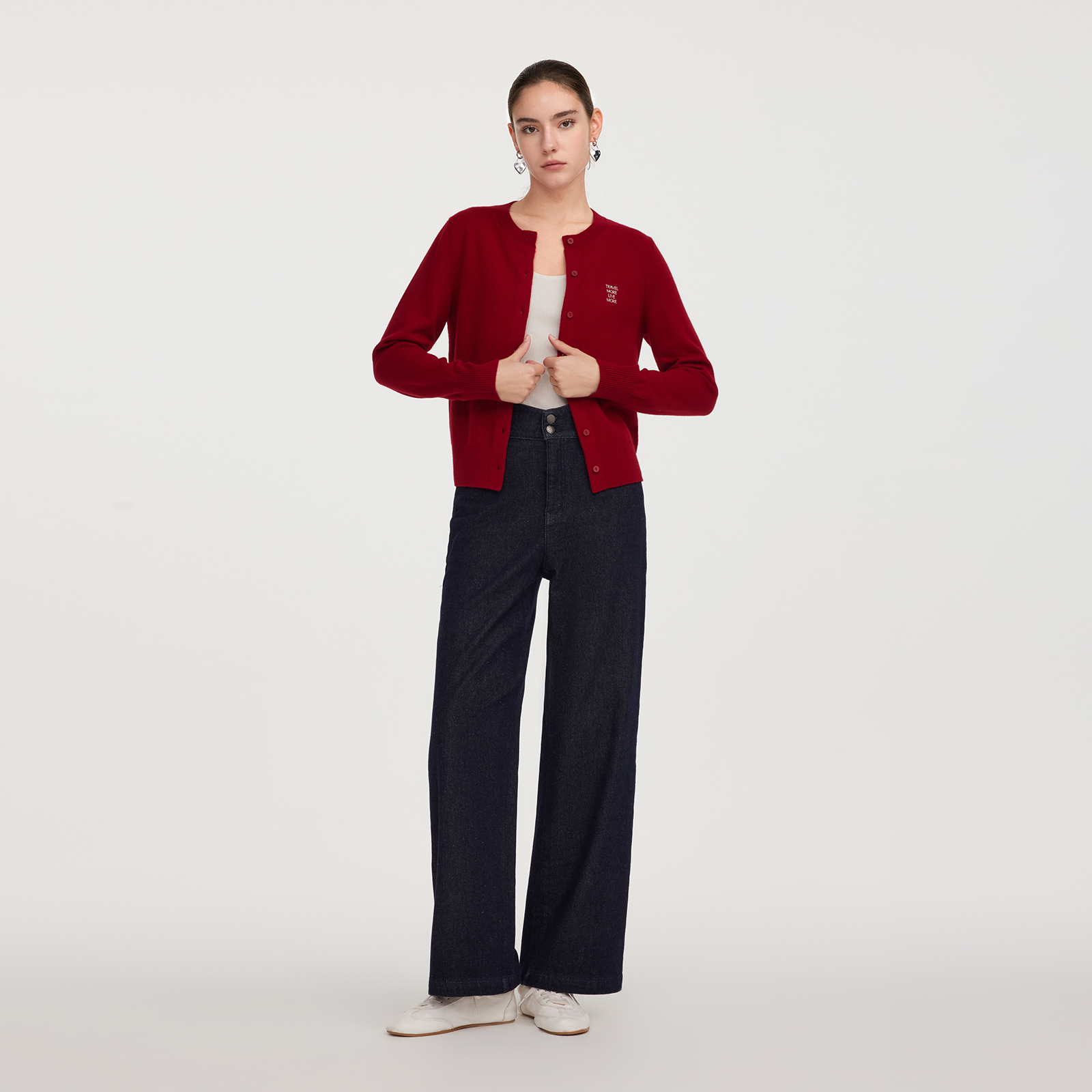 歌莉娅冬季新品宽松加绒直筒牛仔裤1E3JCD23G