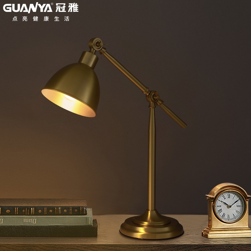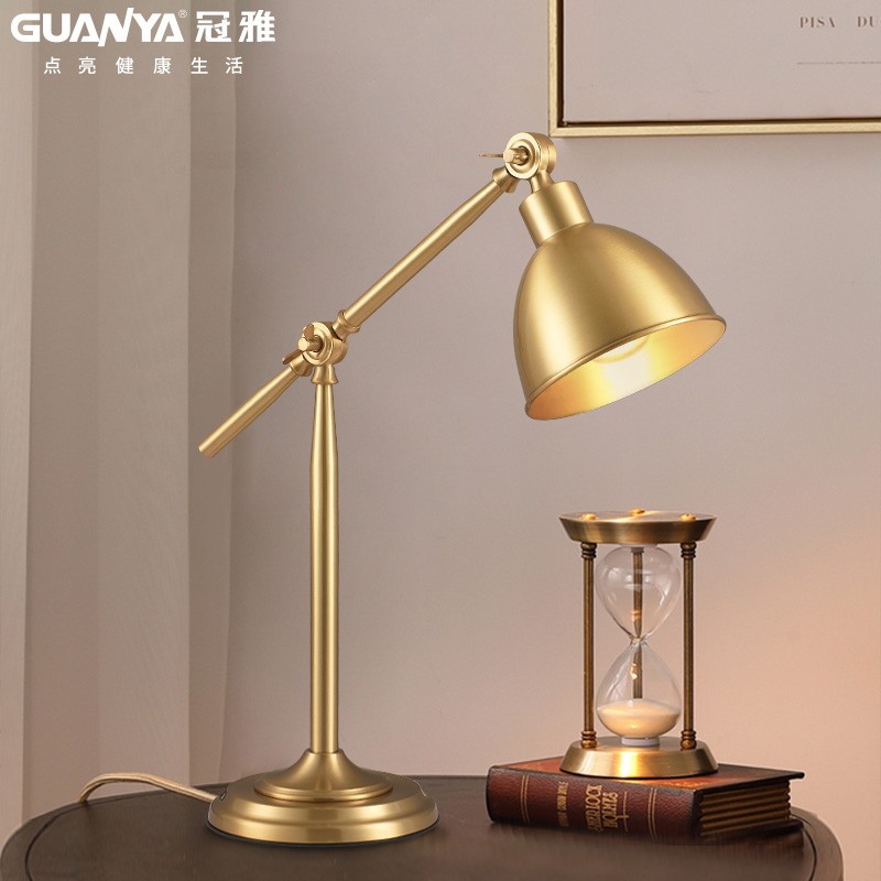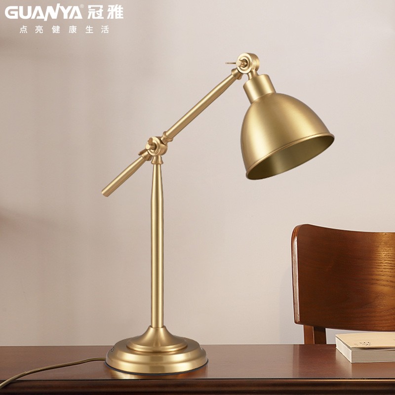 冠雅全铜复古台灯书桌护眼老板办公阅读学生学习S长臂书房暖光台