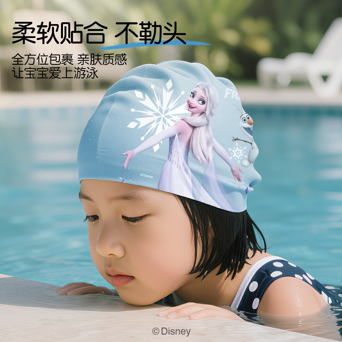 迪士尼儿童泳帽女童硅胶游泳帽防水护耳长发专用女孩游泳训练套装