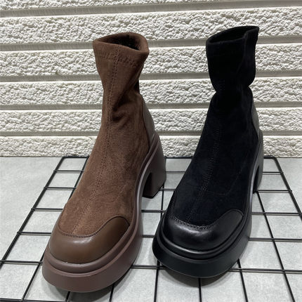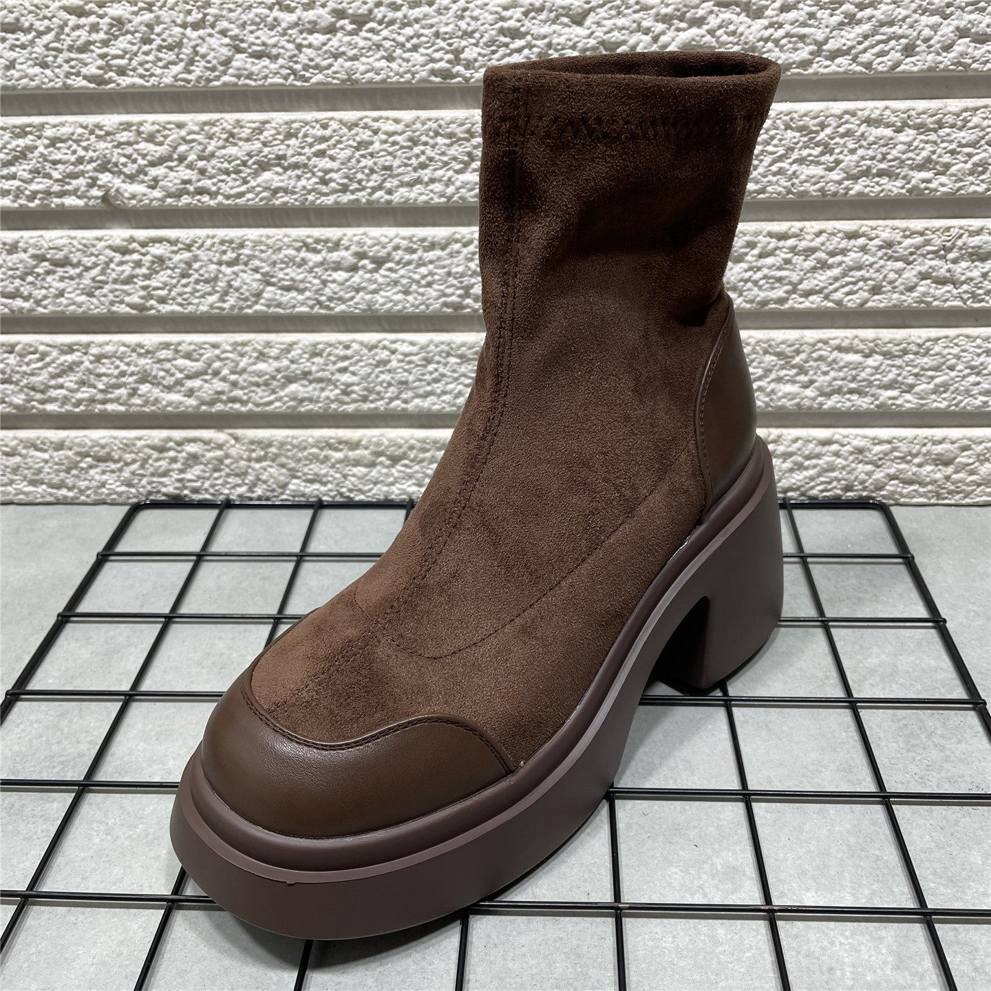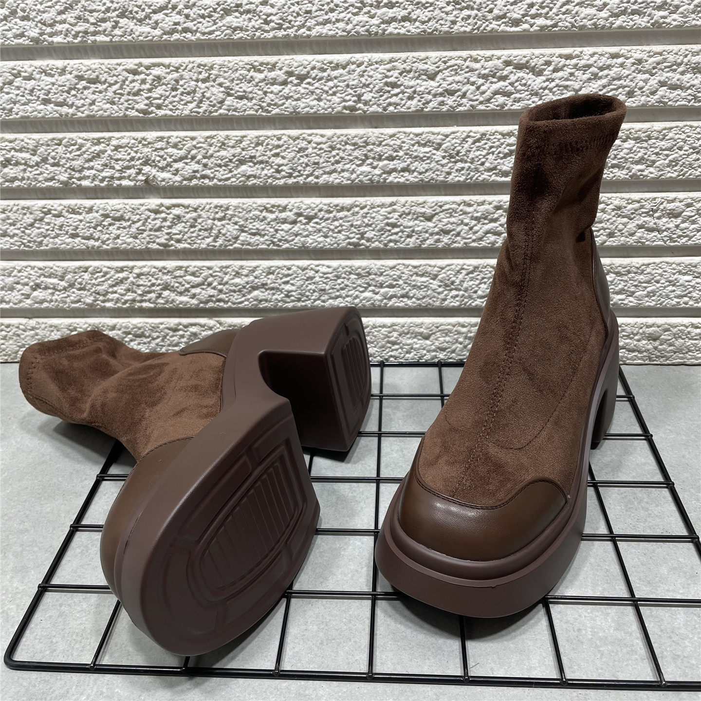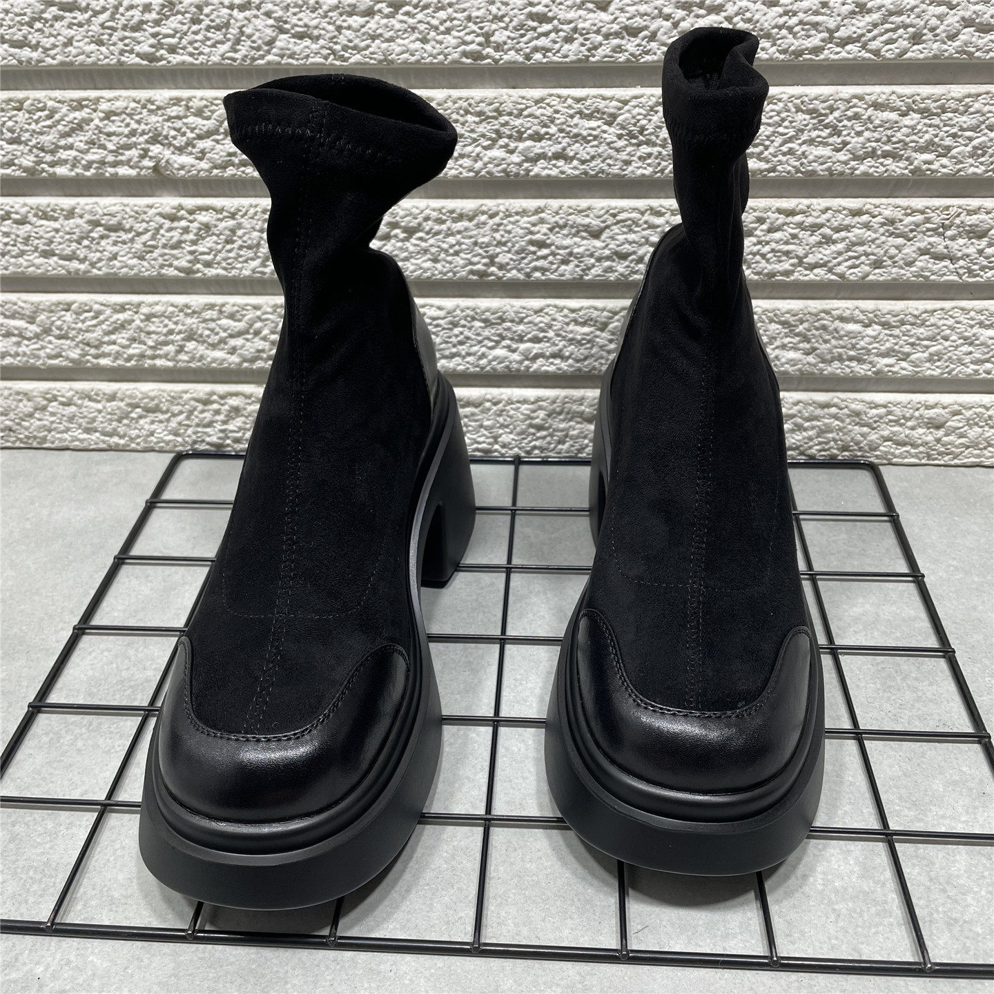 断码处理厚底短靴女高跟冬季加绒高级感炸街小踝靴增高瘦瘦靴女潮