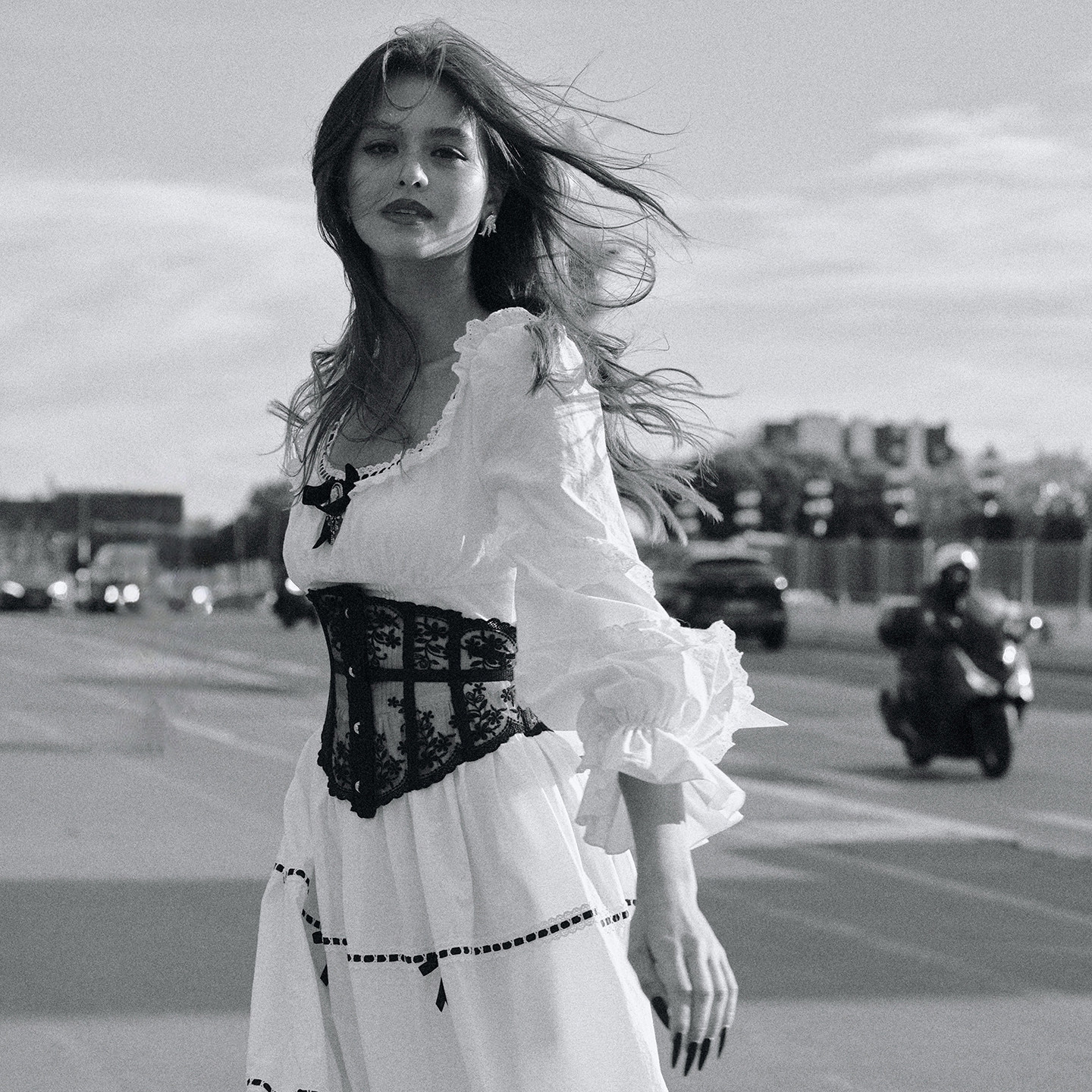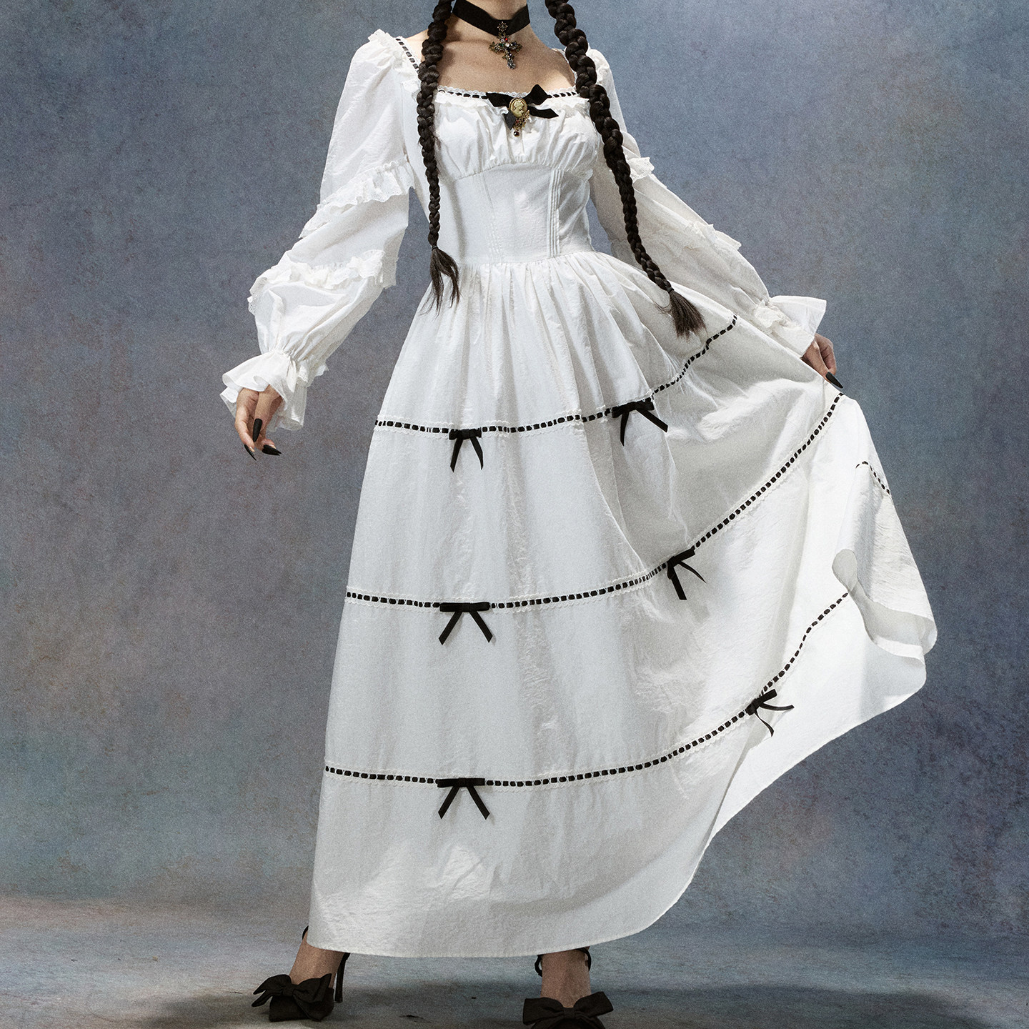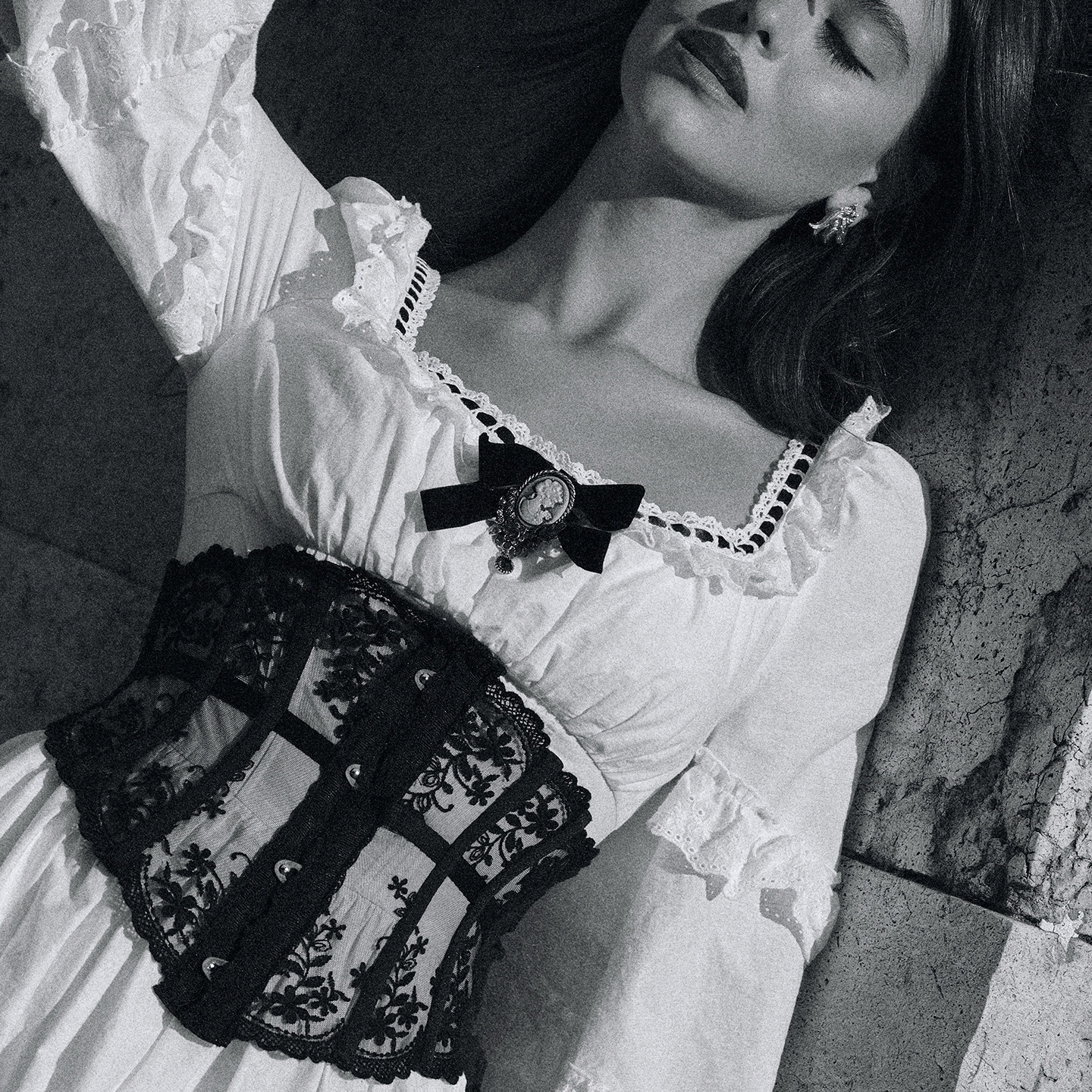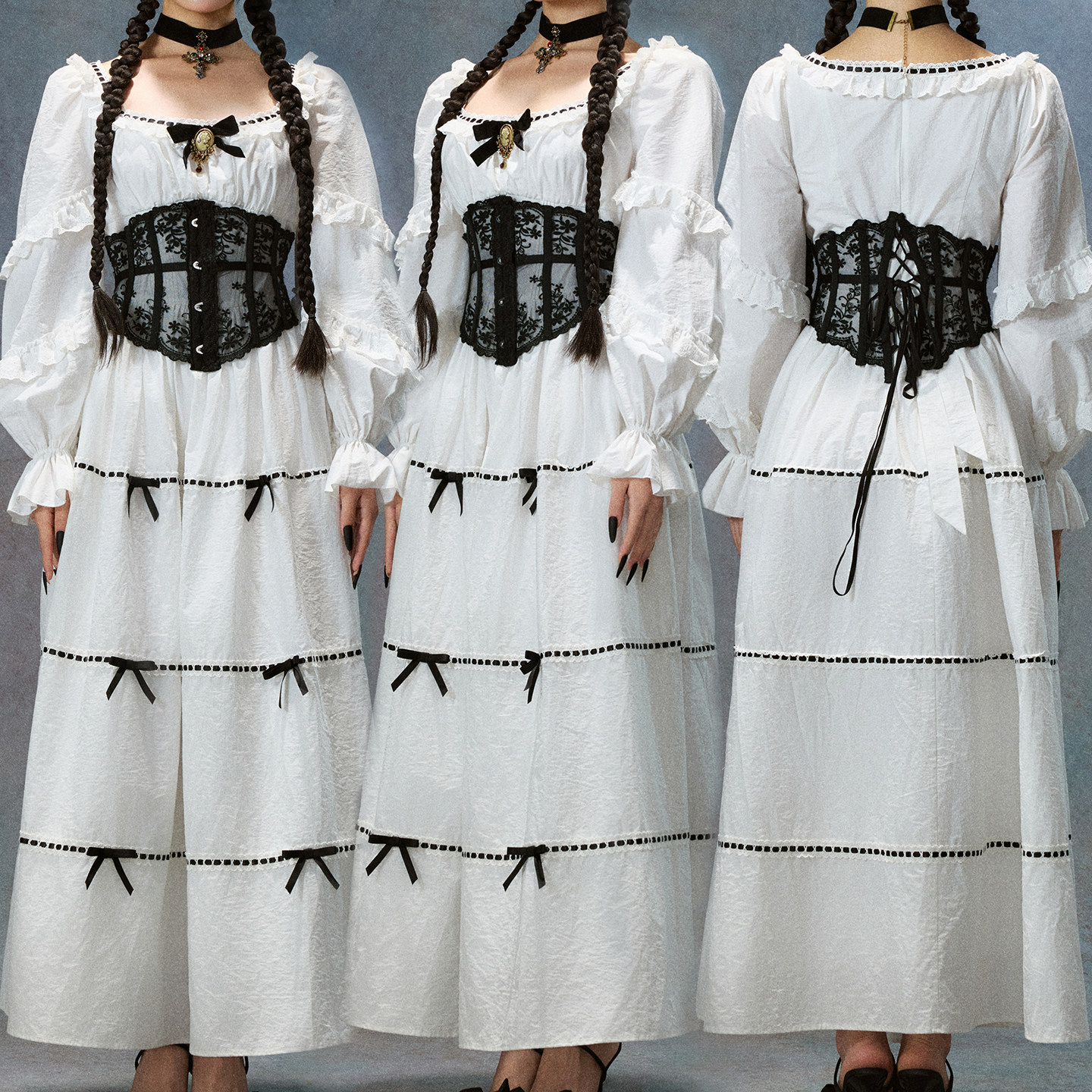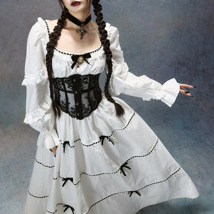 LaceMade 幽灵颂歌 法式万圣节暗黑氛围感白色连衣裙鱼骨腰封套装