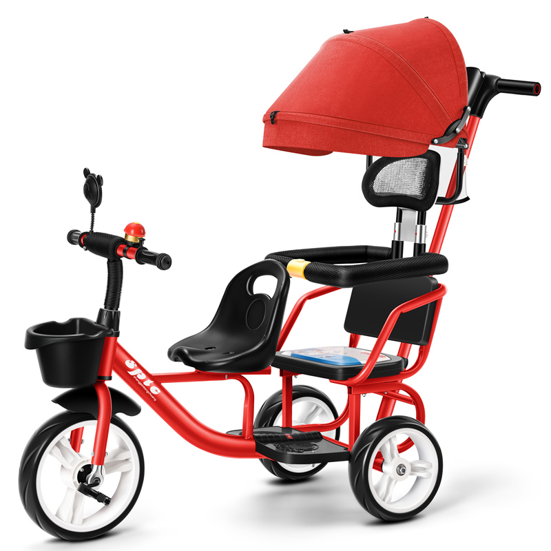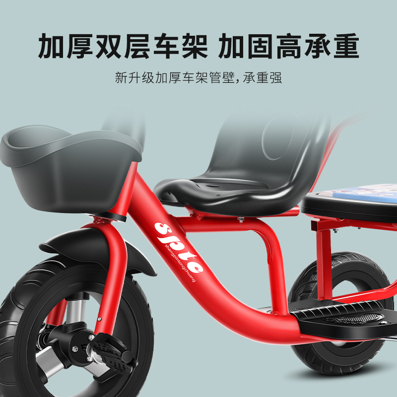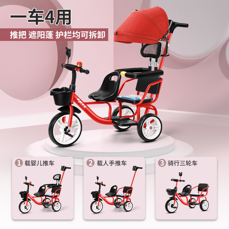 儿童三轮车双胞胎后座坐可带双人童车自行车脚踏车宝宝手推幼园