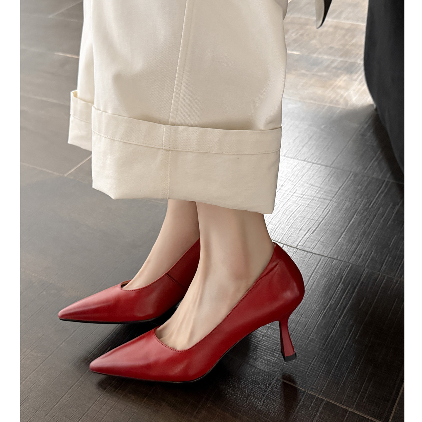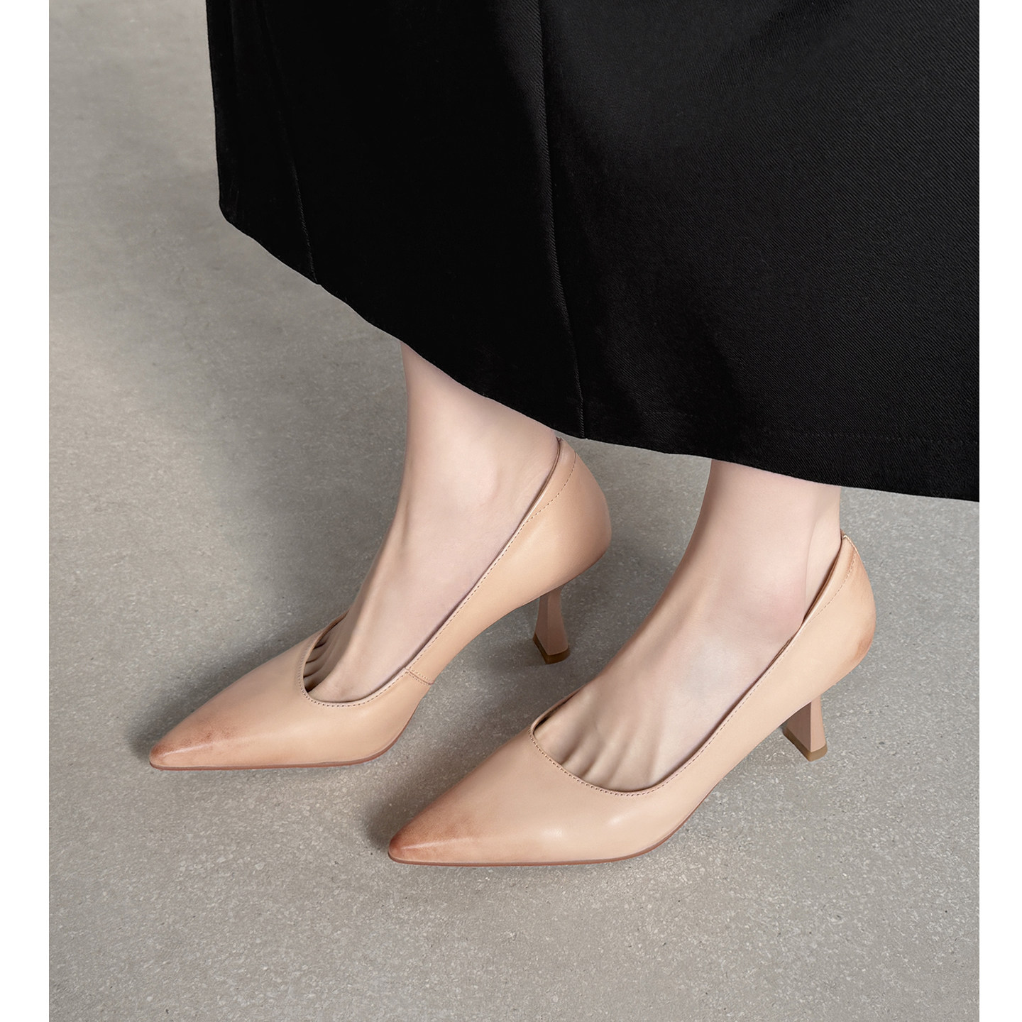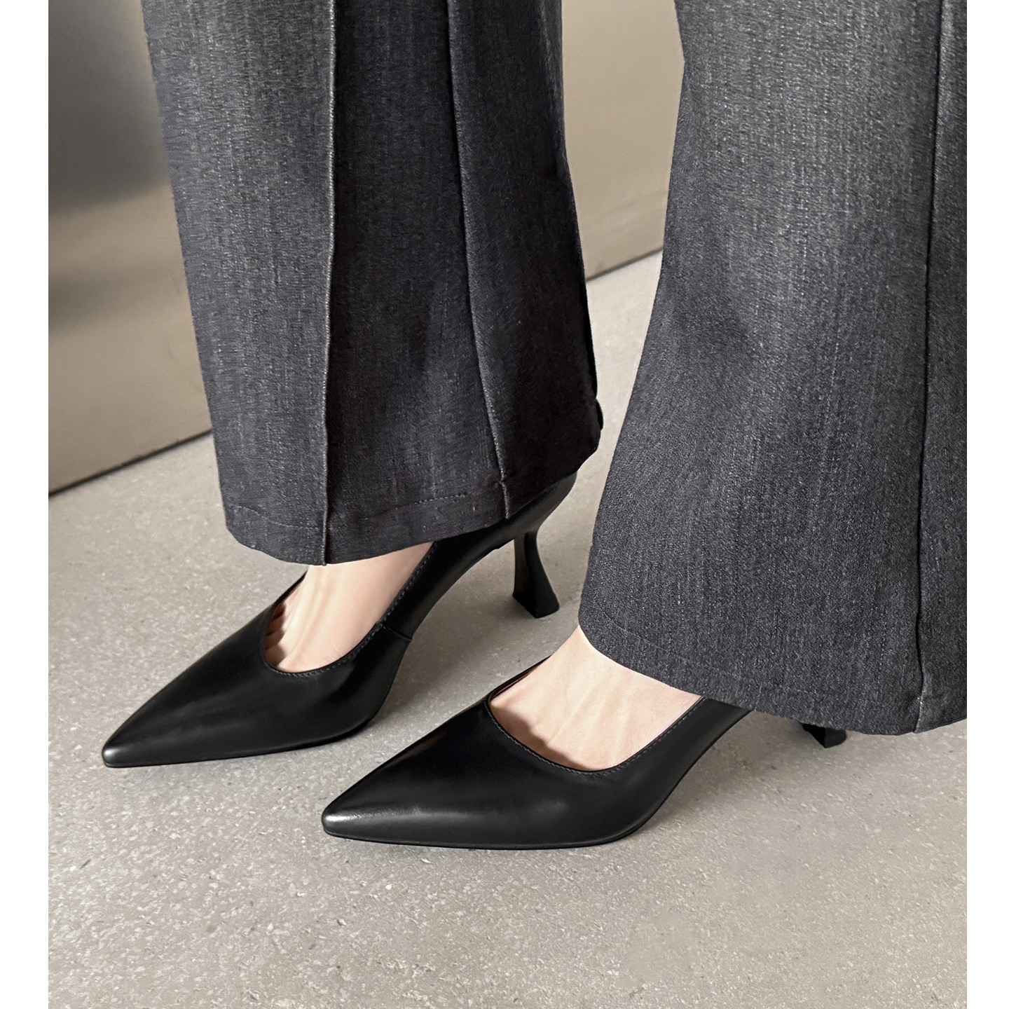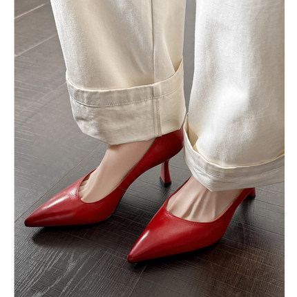 不累脚尖头高跟鞋纯真皮ol单鞋