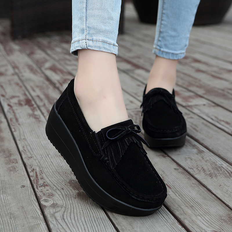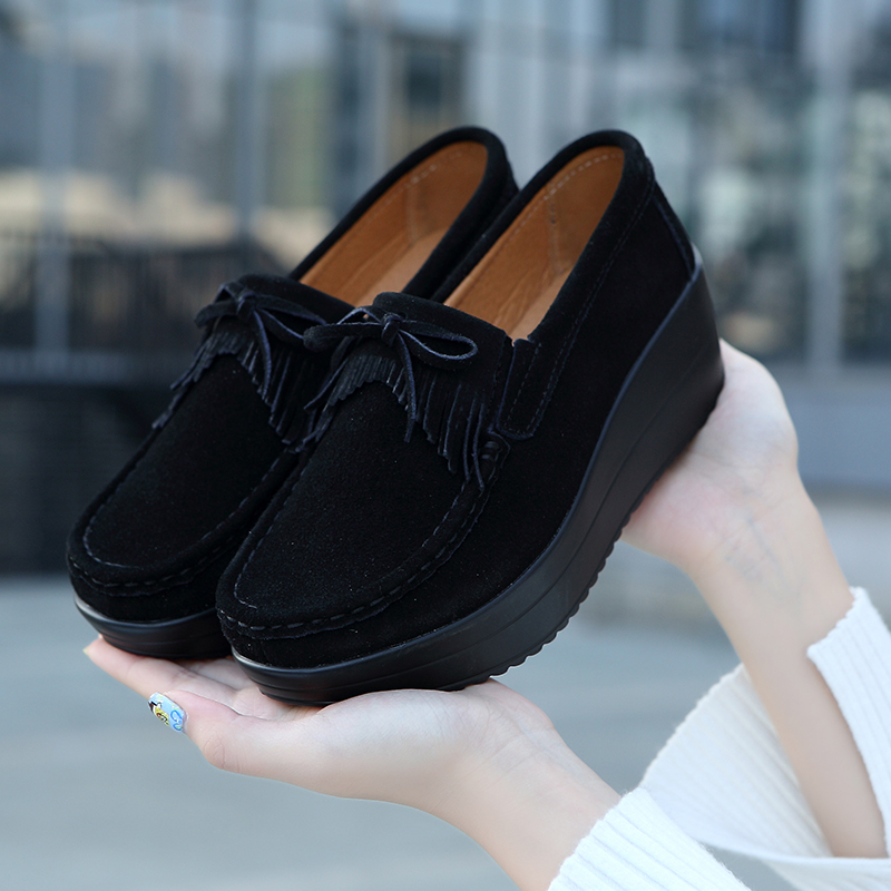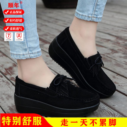 春秋款真皮女单鞋浅口一脚蹬女鞋松糕厚底摇摇鞋工作鞋妈妈鞋软底