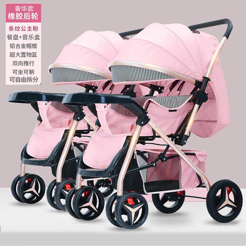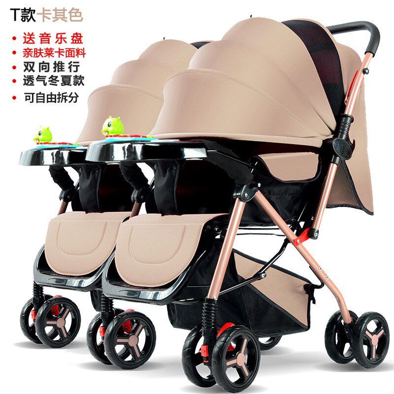 双胞胎婴儿推车可坐可躺双人一键折叠收车可拆分可换Y向减震带餐