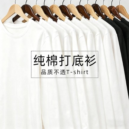 重磅纯棉白色长袖t恤打底衫男士宽松圆领卫衣内搭2025秋冬纯棉