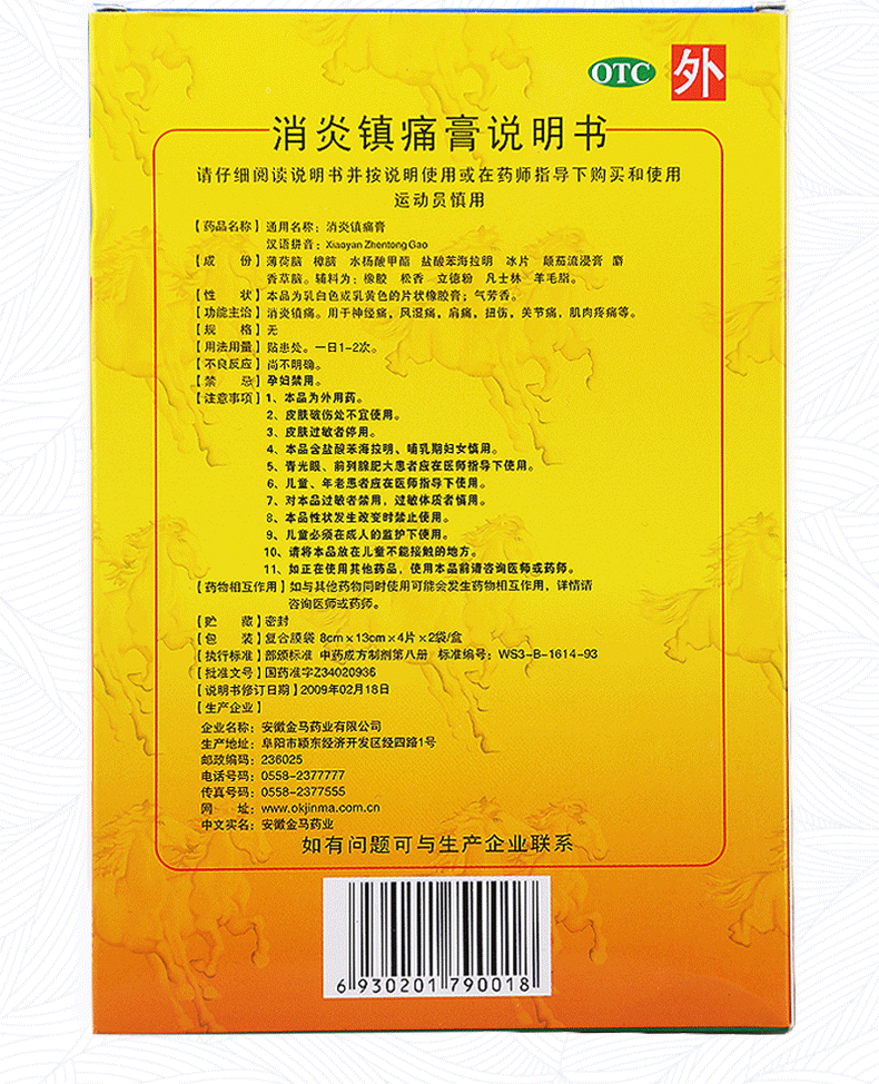 【金玛神】消炎镇痛膏8cm*13cm*8贴/盒