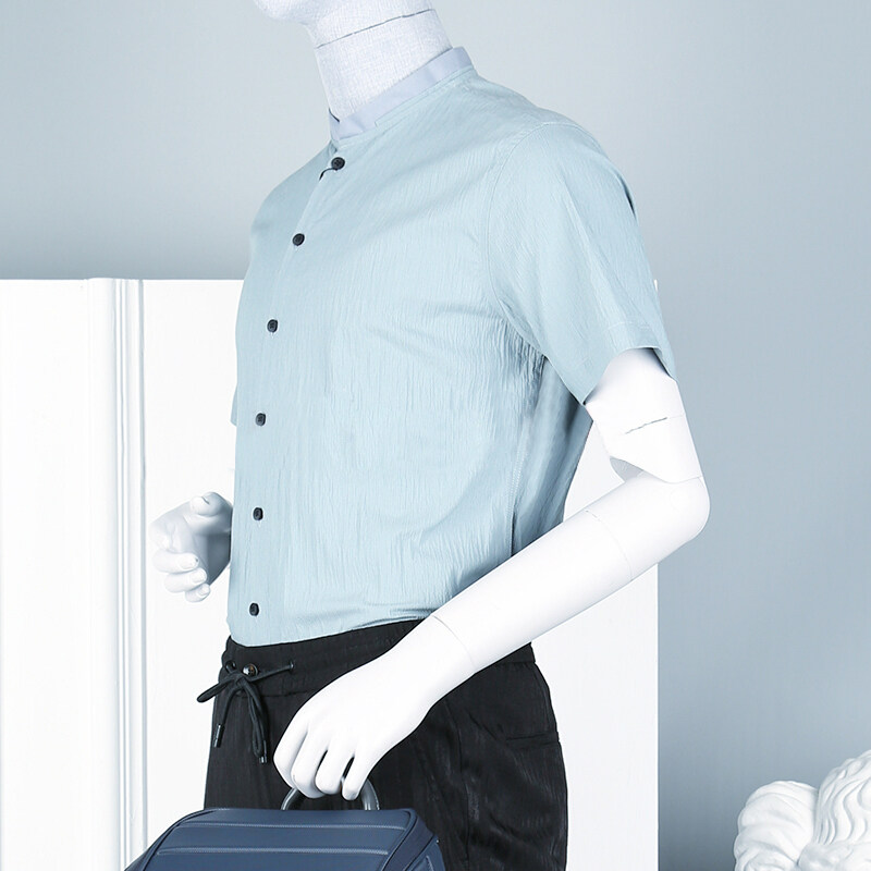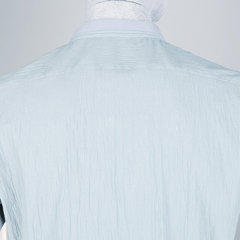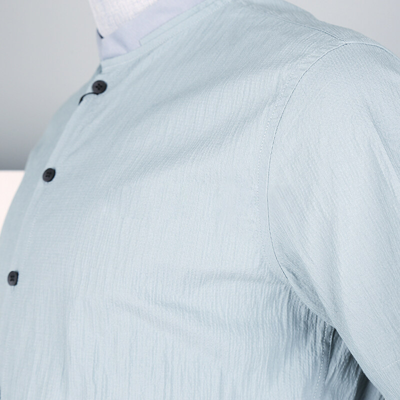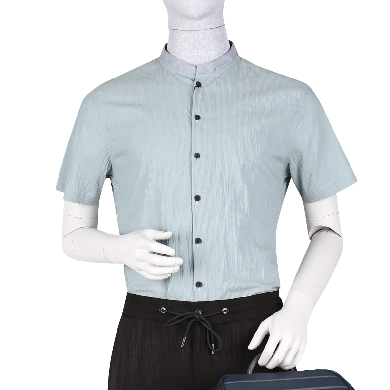 佛伦斯Folunsi男装夏季时尚简约休闲风浅蓝色青年小立领舒适衬衫