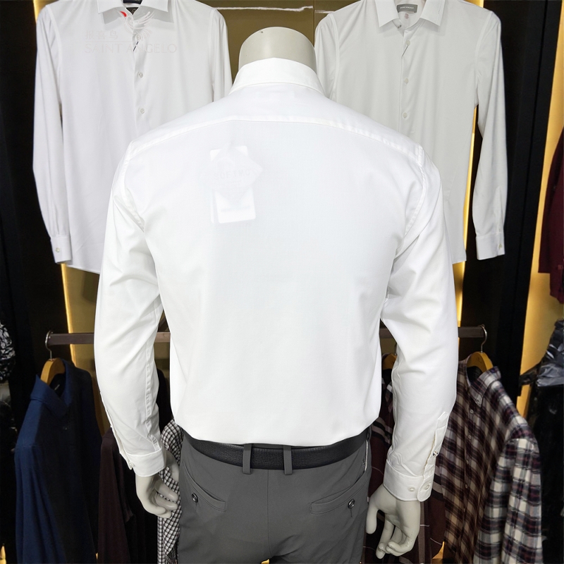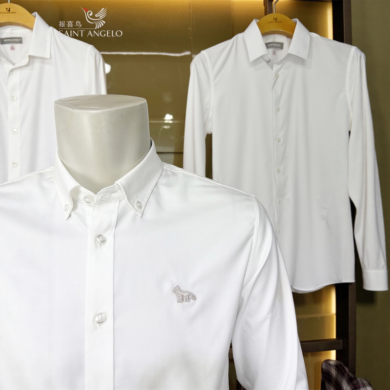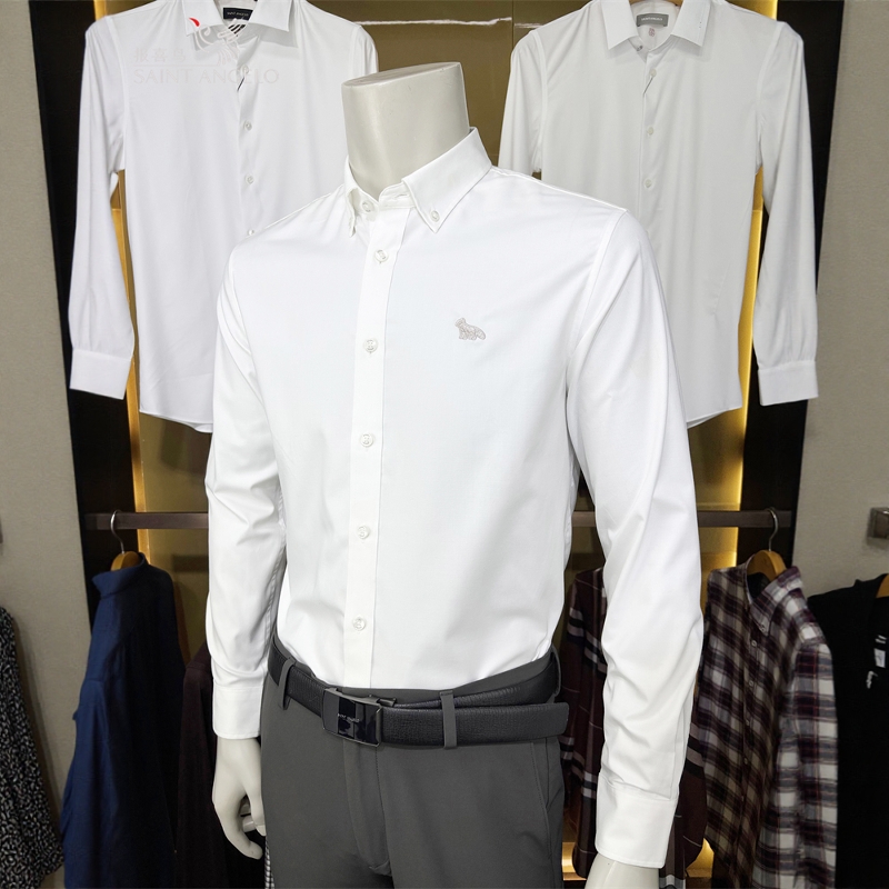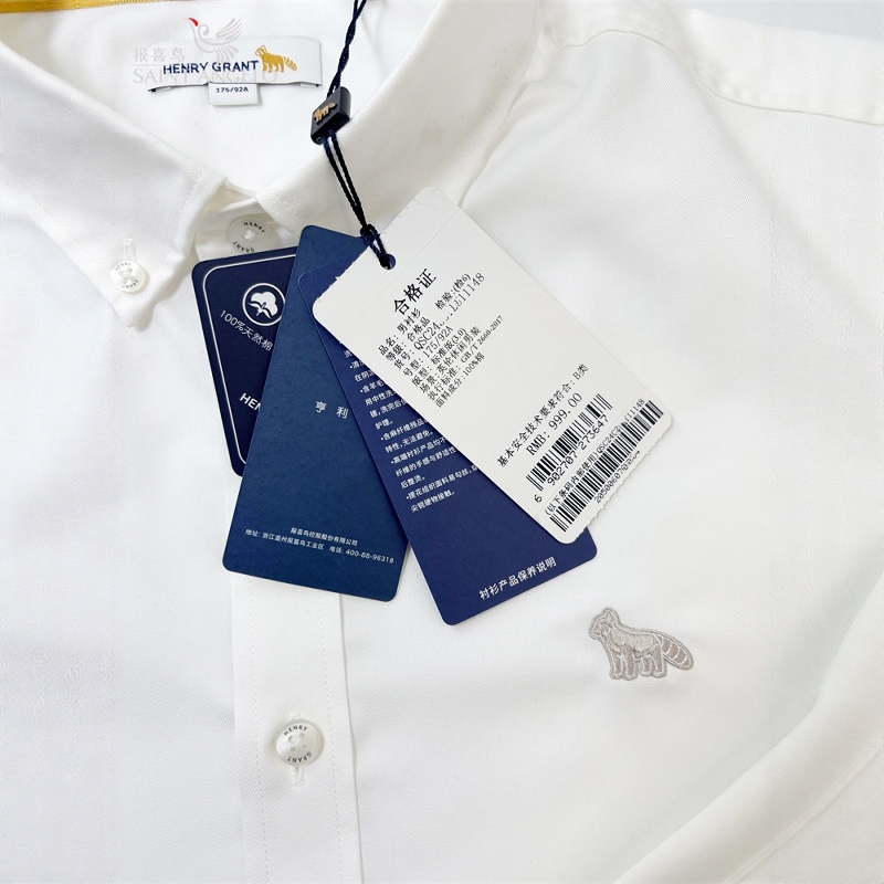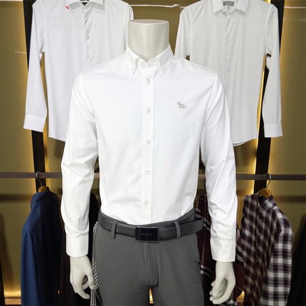报喜鸟100%棉白色扣领秋季男士英伦风休闲正品修身款长袖衬衫衬衣
