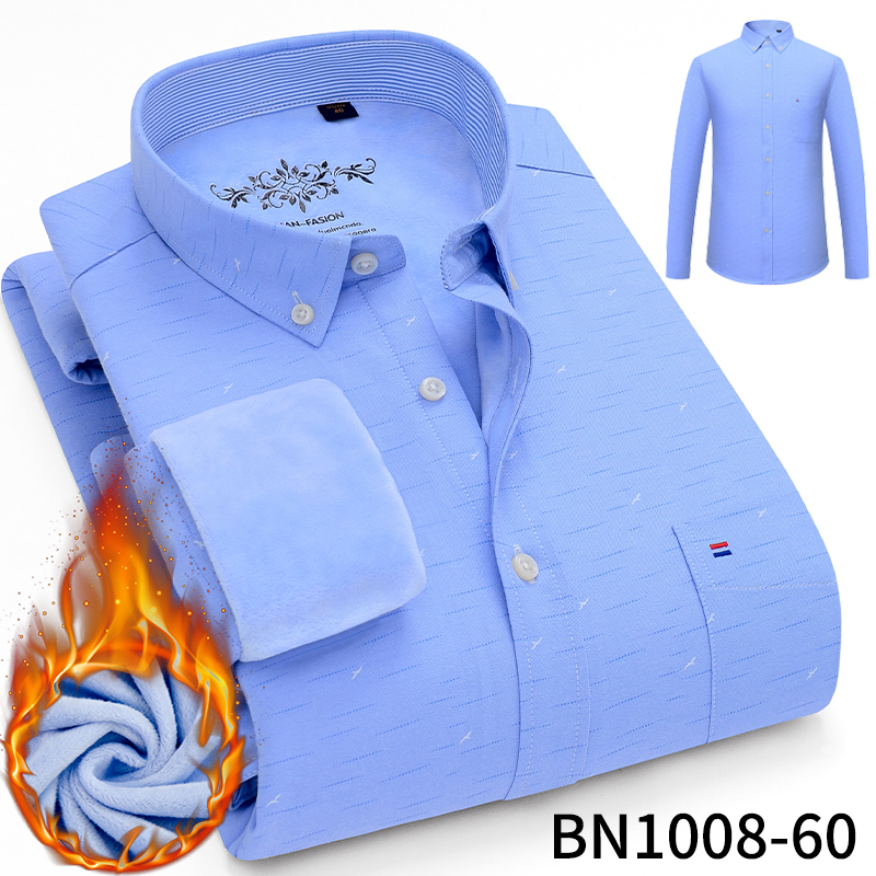 冬季加绒保暖牛津纺衬衫男长袖商务休闲职业装灰色印花衬衣免烫棉