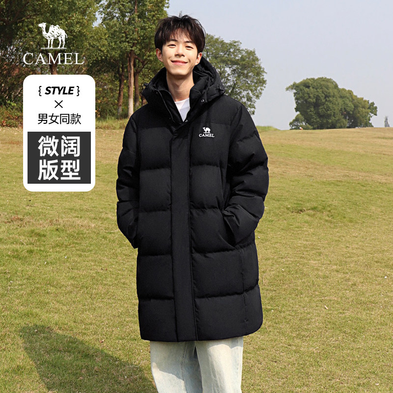 骆驼男装中长款羽绒服男冬季2025新款三防加绒加厚防寒保暖外套男