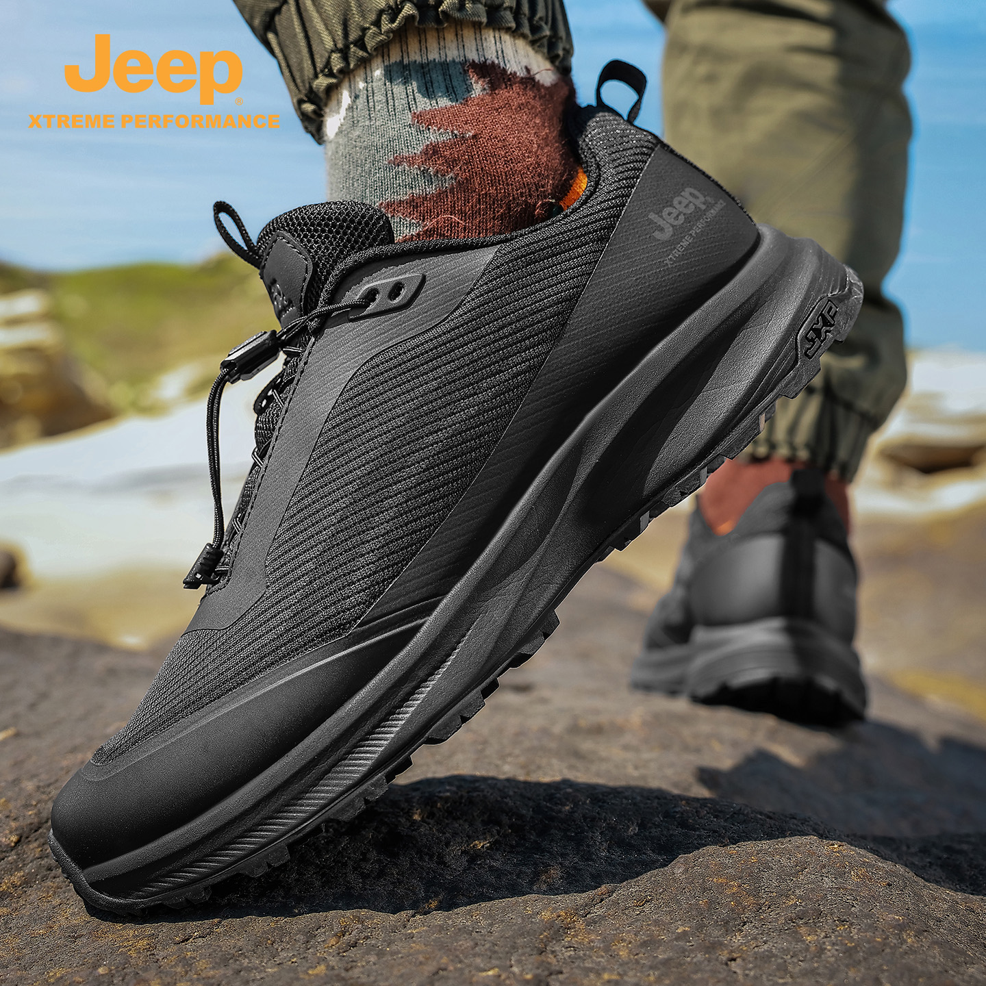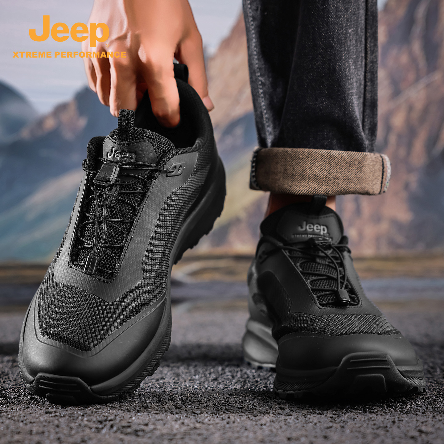 Jeep吉普官方休闲鞋防滑耐磨缓震徒步鞋男士轻便透气免系带运动鞋