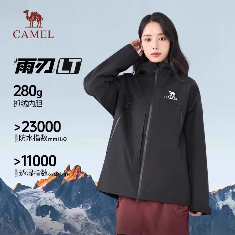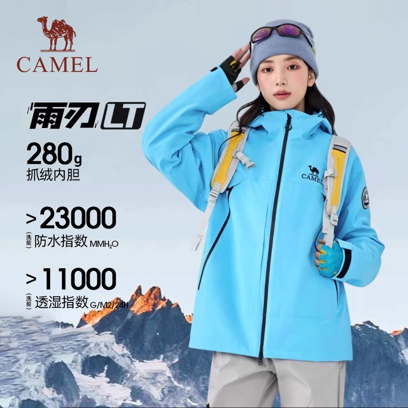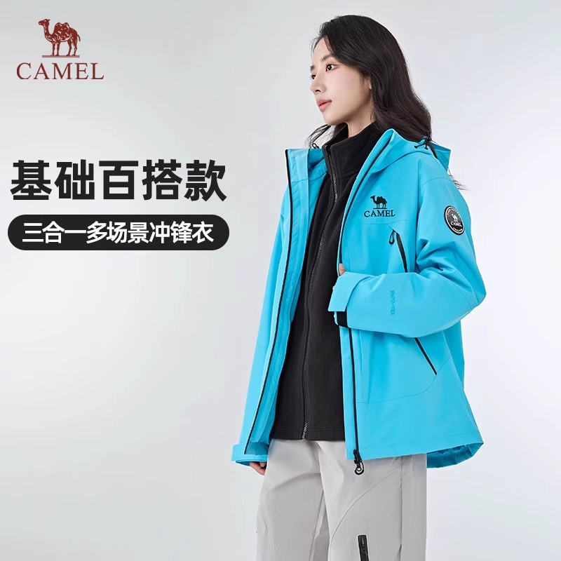 骆驼王者凯甲X冲锋衣女三合一2025新款逆光蓝外套防水登山服装男