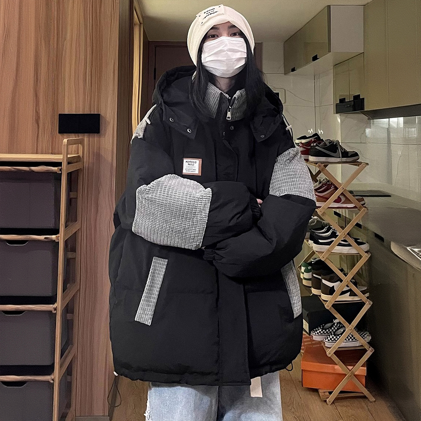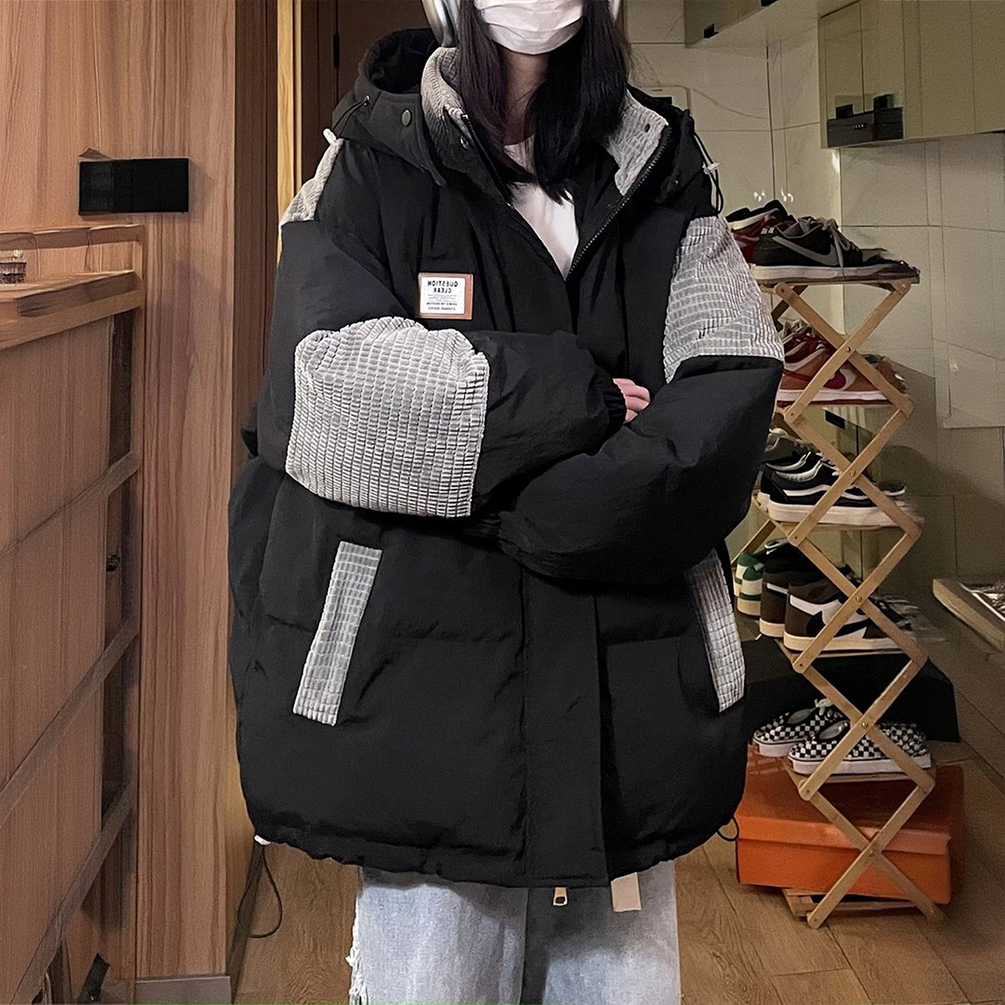 胖mm大码女装美式工装夹棉外套女冬季新款小众设计感连帽棉服上衣