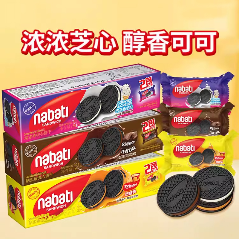 纳宝帝丽芝士夹心饼干草莓巧克力奶酪曲奇奶香下午茶零食80g/盒