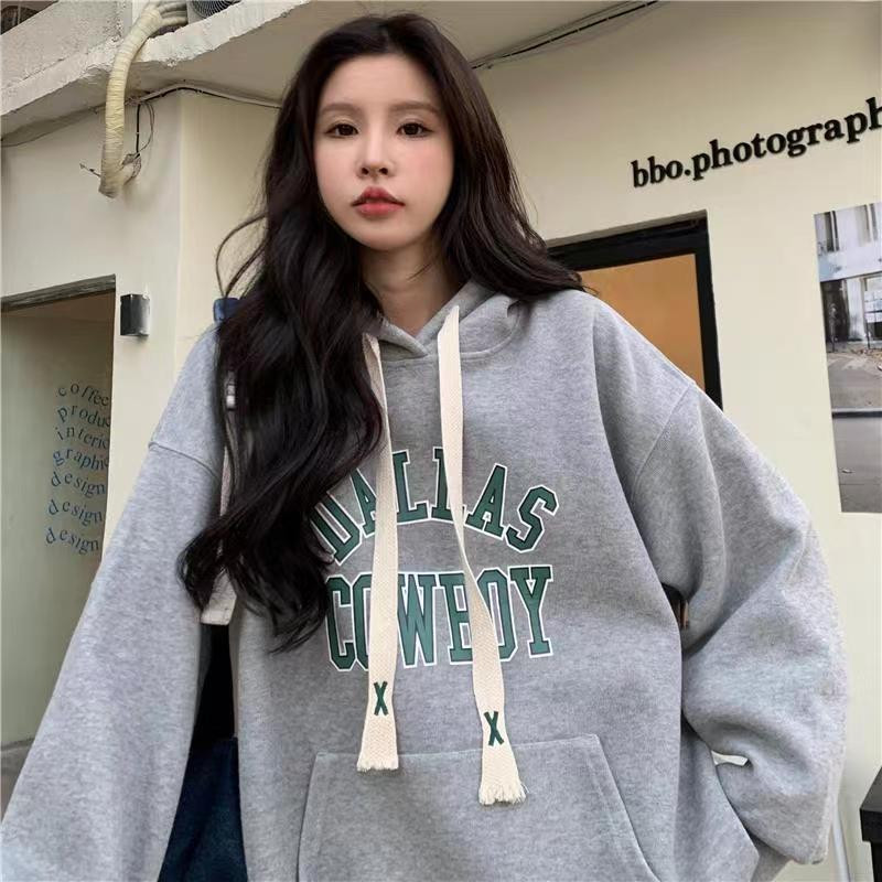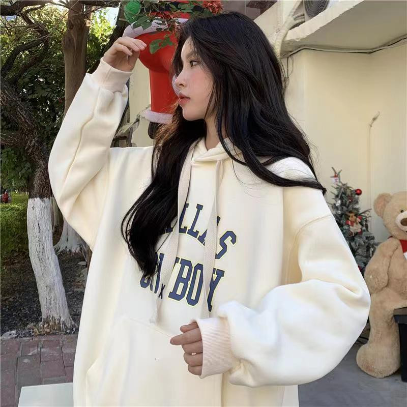 美式复古慵懒oversize连帽卫衣外套女2026新款秋冬加绒加厚棒球服