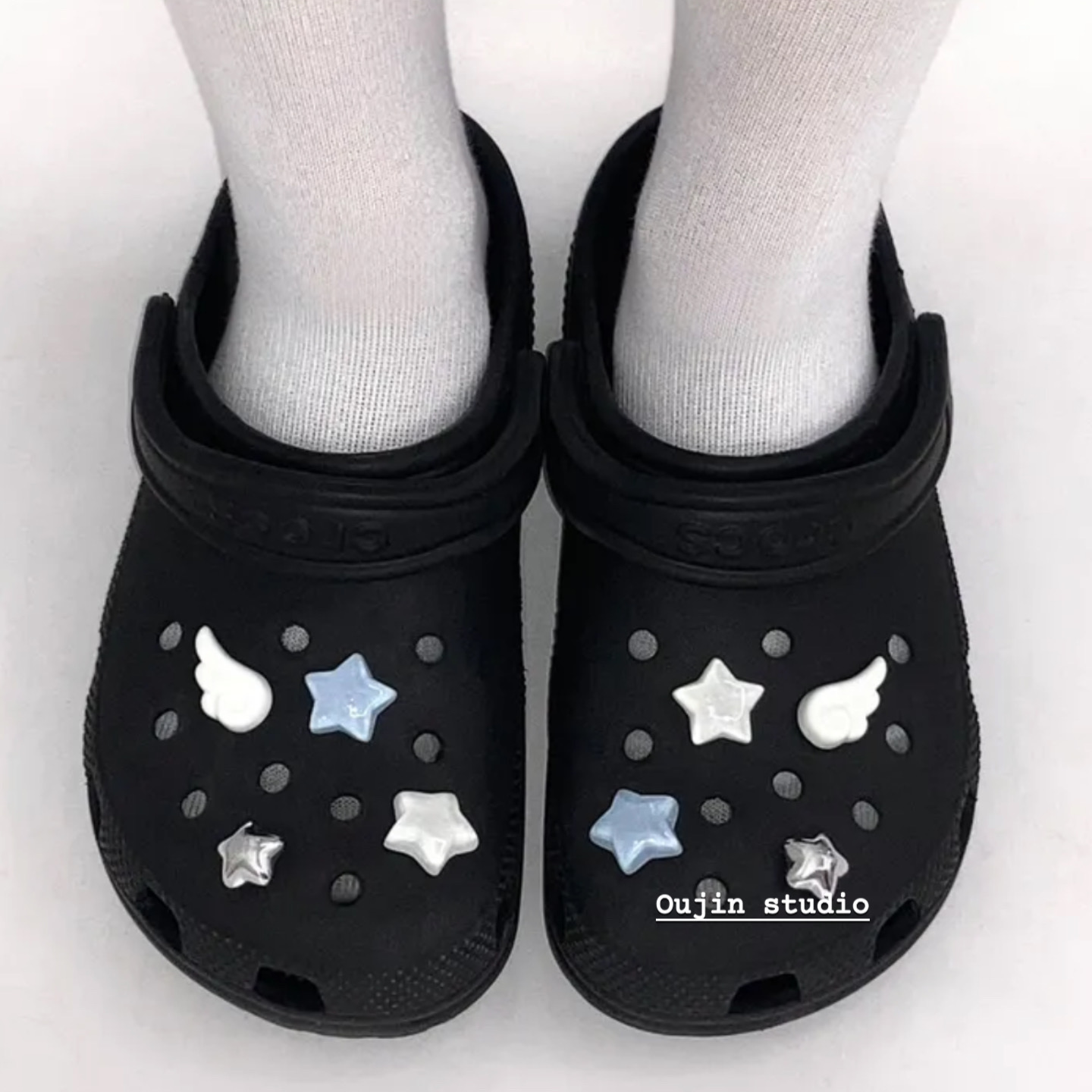 韩系ins小众可爱卡通少女心迷你天使翅膀星星洞洞鞋扣适配diy鞋花