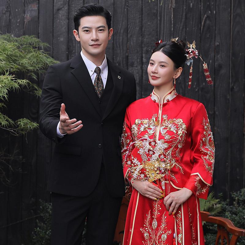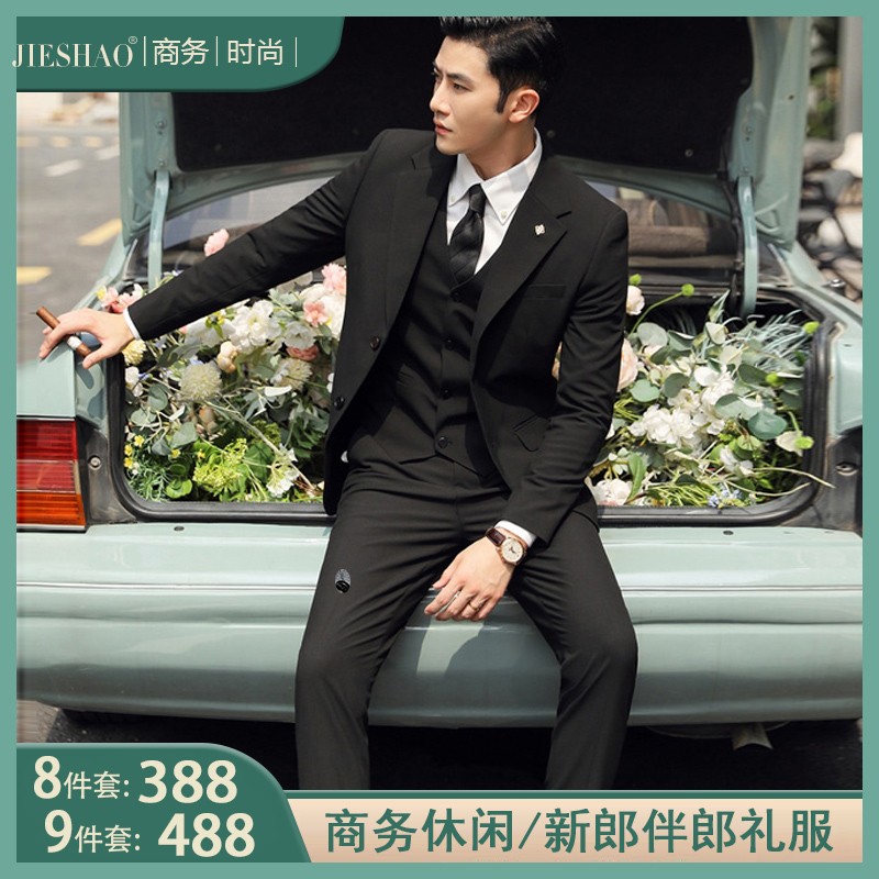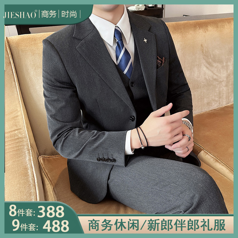 双开叉秋冬休闲西装套装男结婚新郎婚礼服高端商务男士西服三件套