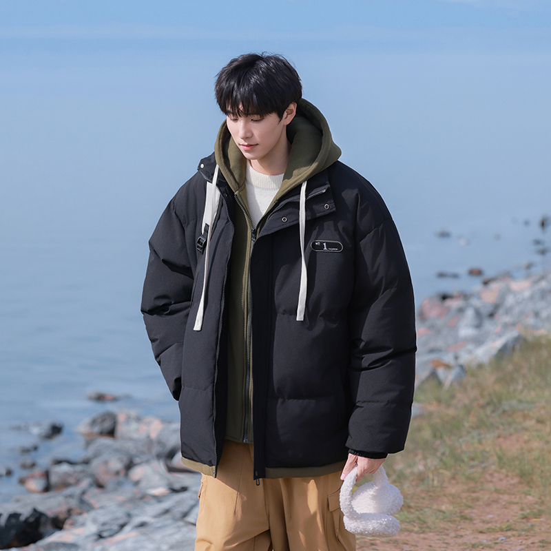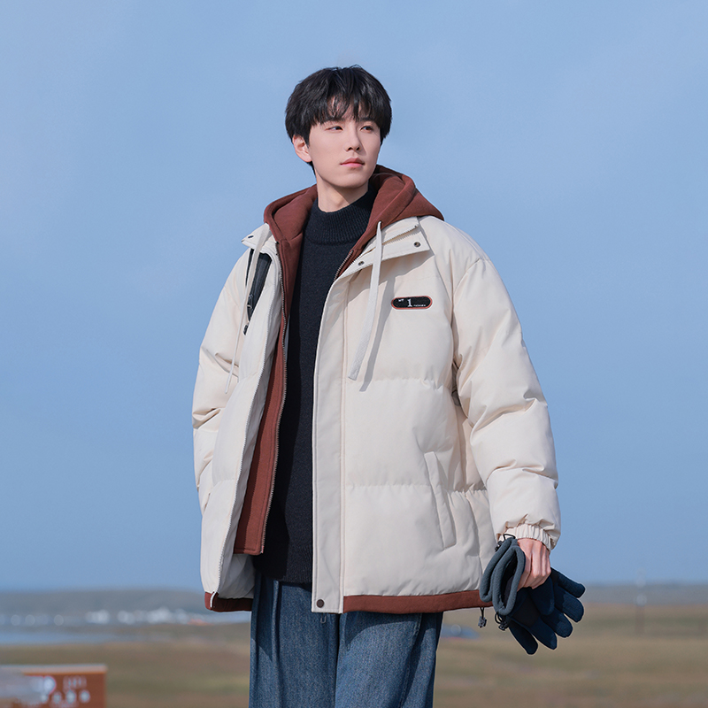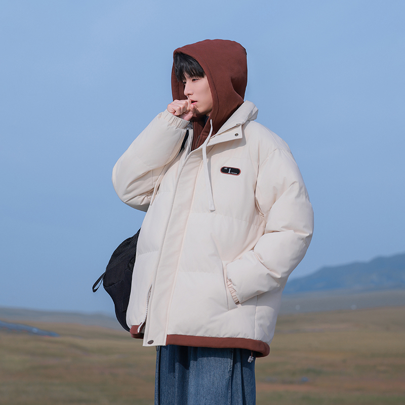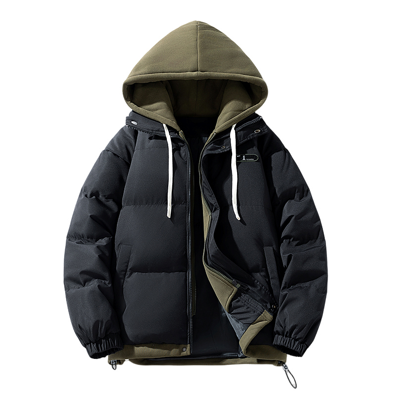 假两件棉衣外套男冬季2025新款宽松美式潮牌保暖加厚棉袄连帽棉服