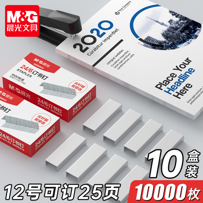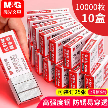 10盒晨光订书钉24/6通用型12号订书针订书机钉子厚层办公标准型钉