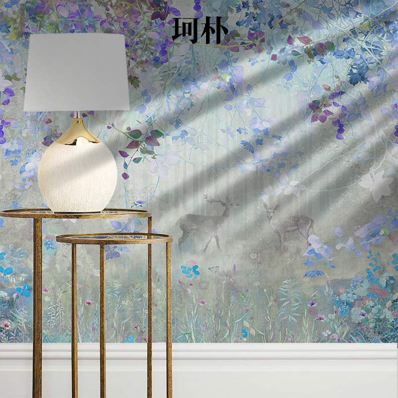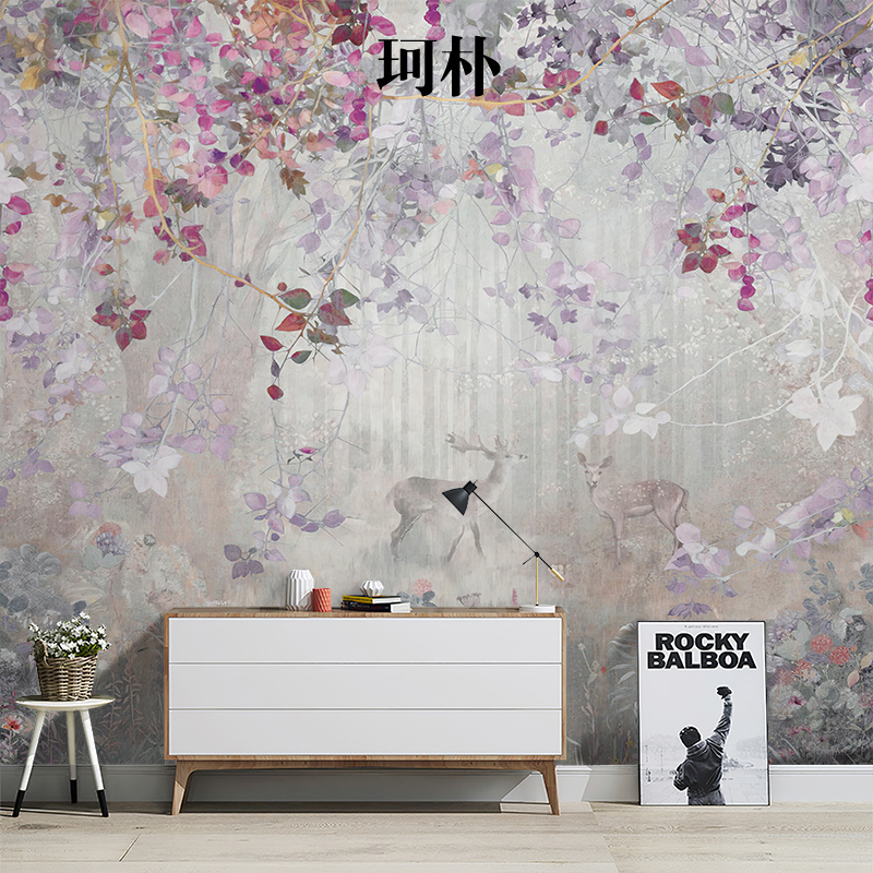 热销珂朴美式手绘田园玫瑰客厅电视背景墙纸沙发无缝壁纸定制壁画