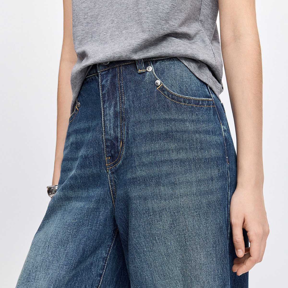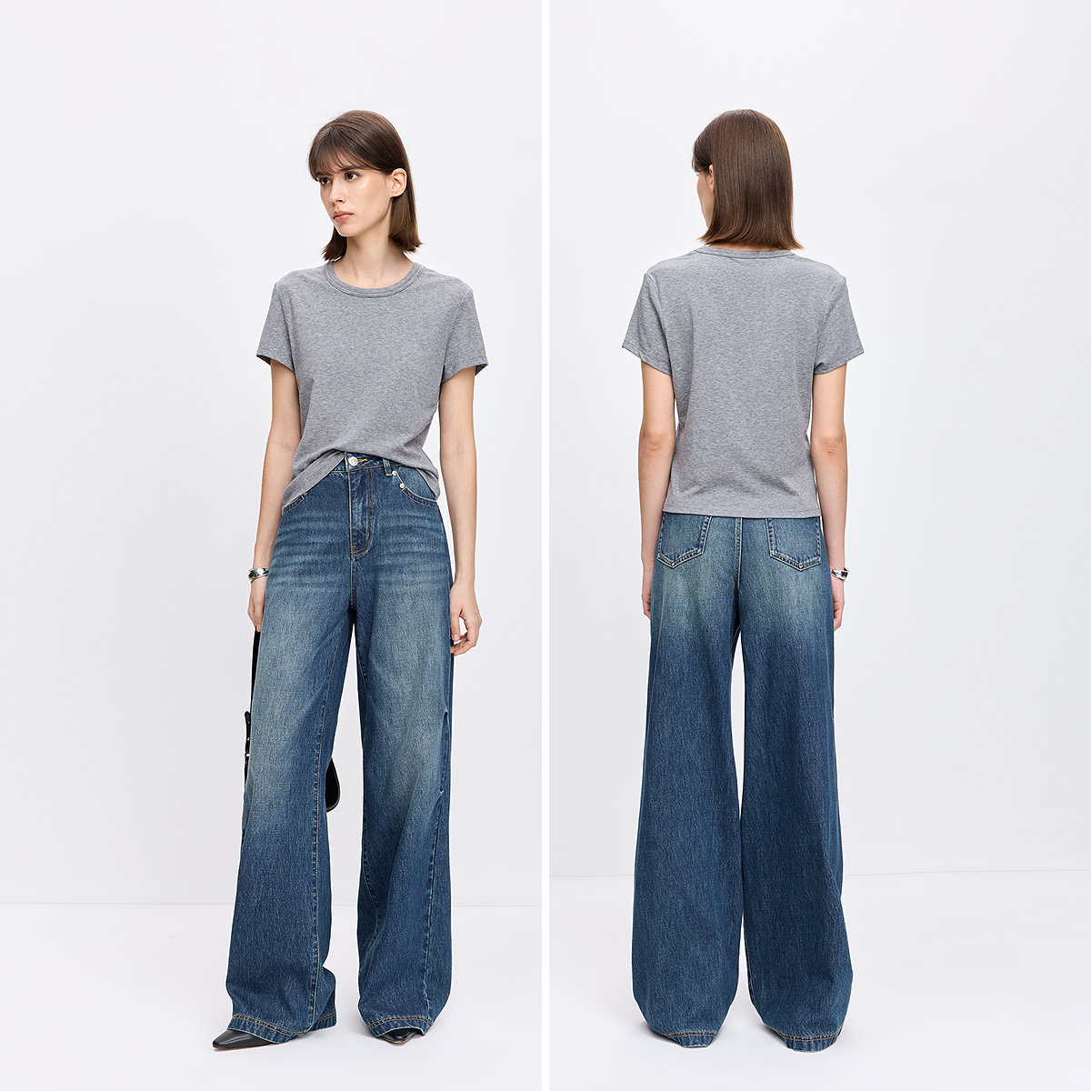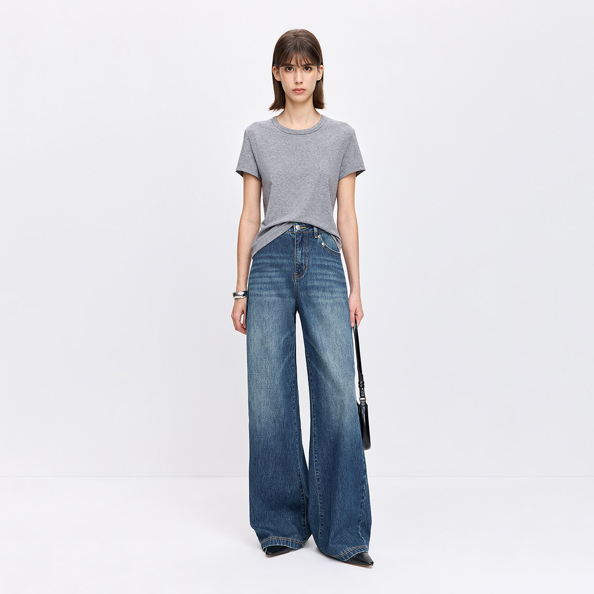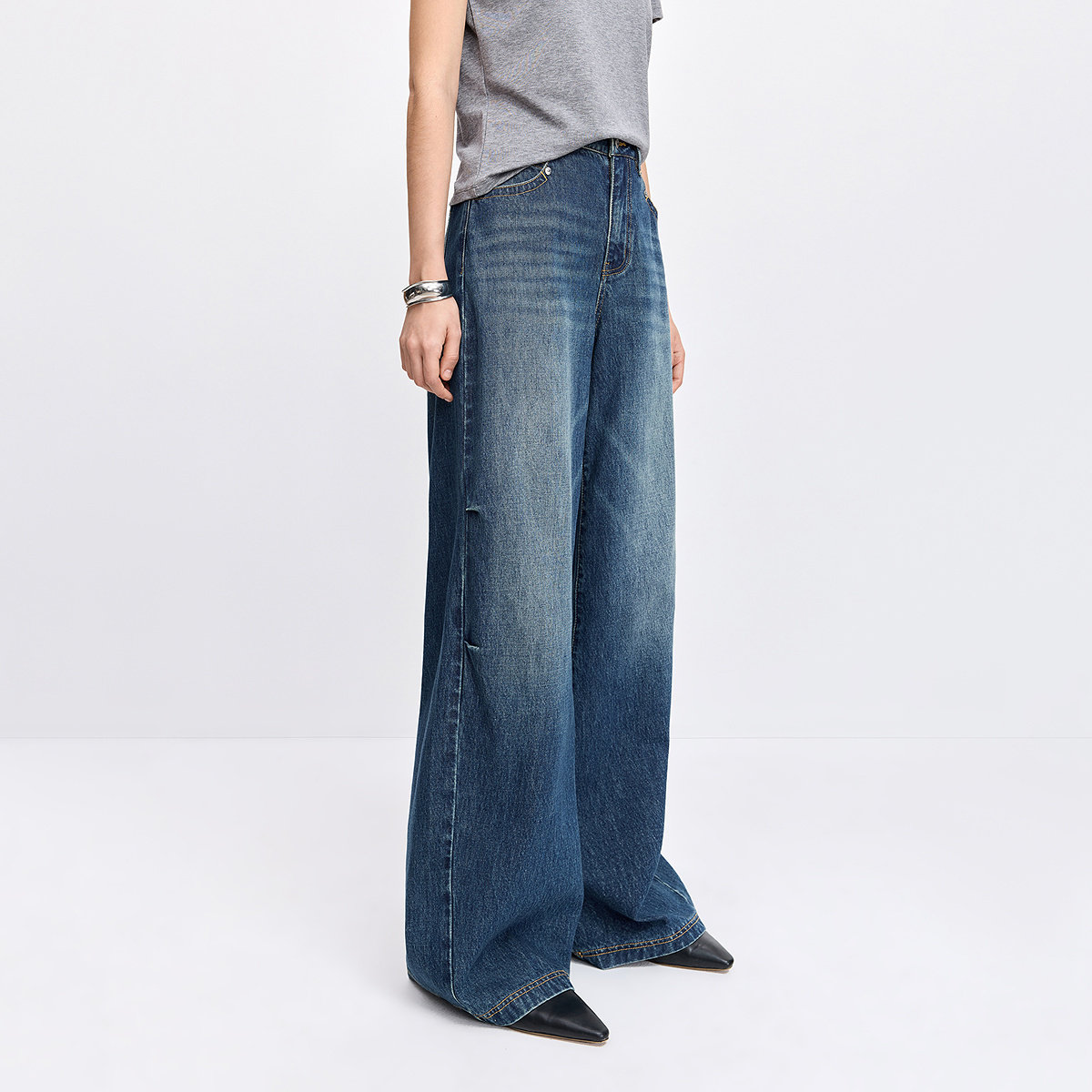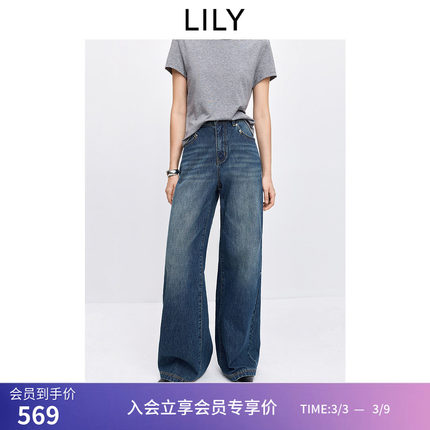 【商场同款】LILY2026春新款纯棉复古休闲通勤直筒阔腿裤牛仔裤女