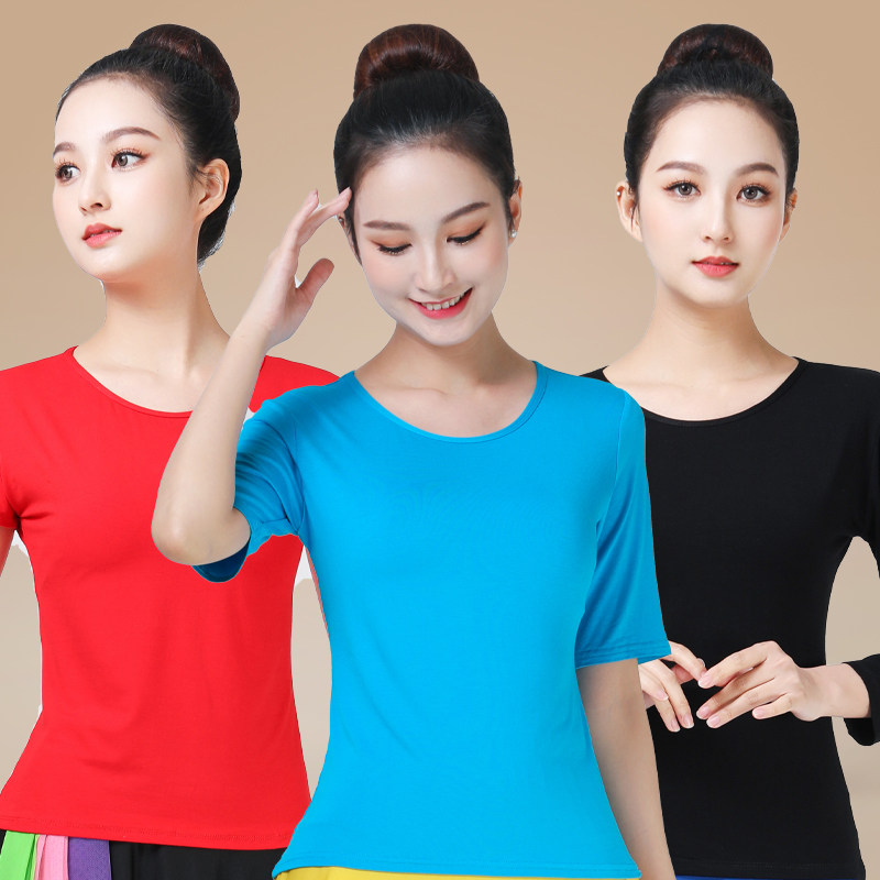 广场舞春秋练功服中老年长袖圆领新款表演跳舞衣服莫代尔显瘦运动