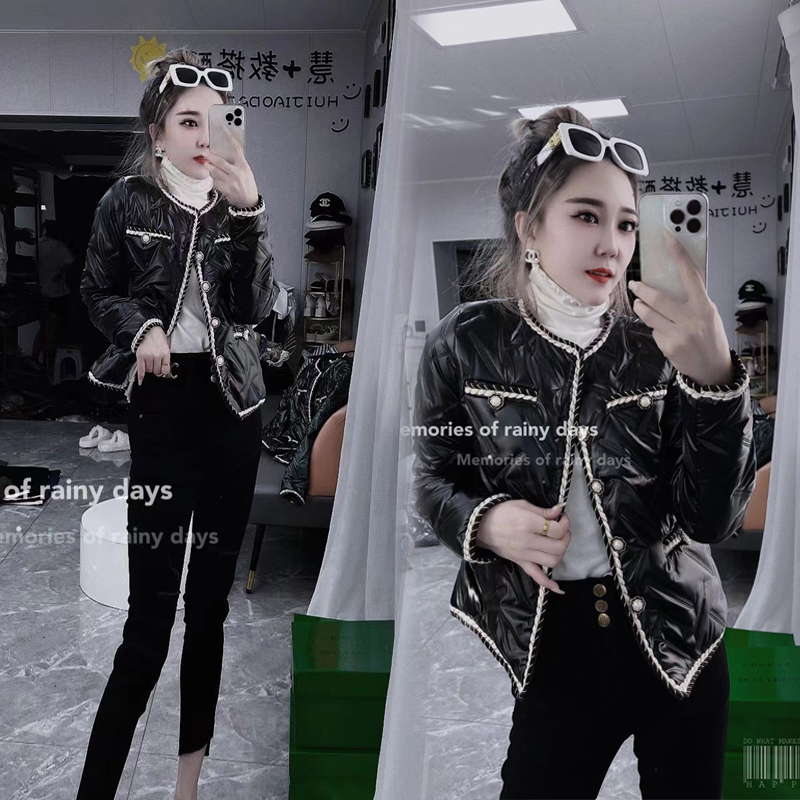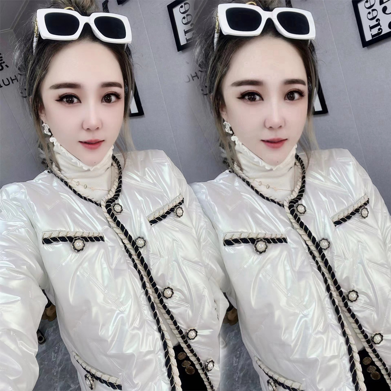 2025冬季新款韩版小香风圆领棉衣免洗羽绒棉服女外套洋气显瘦棉袄