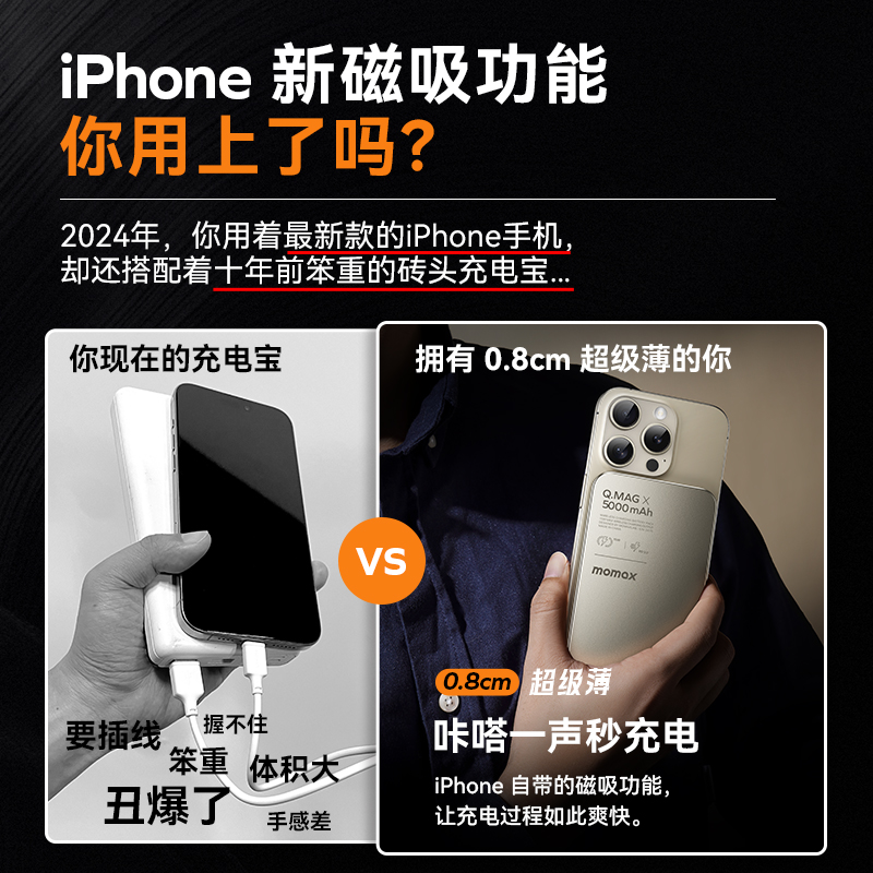 【3C认证可上飞机】MOMAX摩米士磁吸充电宝适用苹果17专用iPhone16Pro超薄金属小巧MagSafe无线快充移动电源